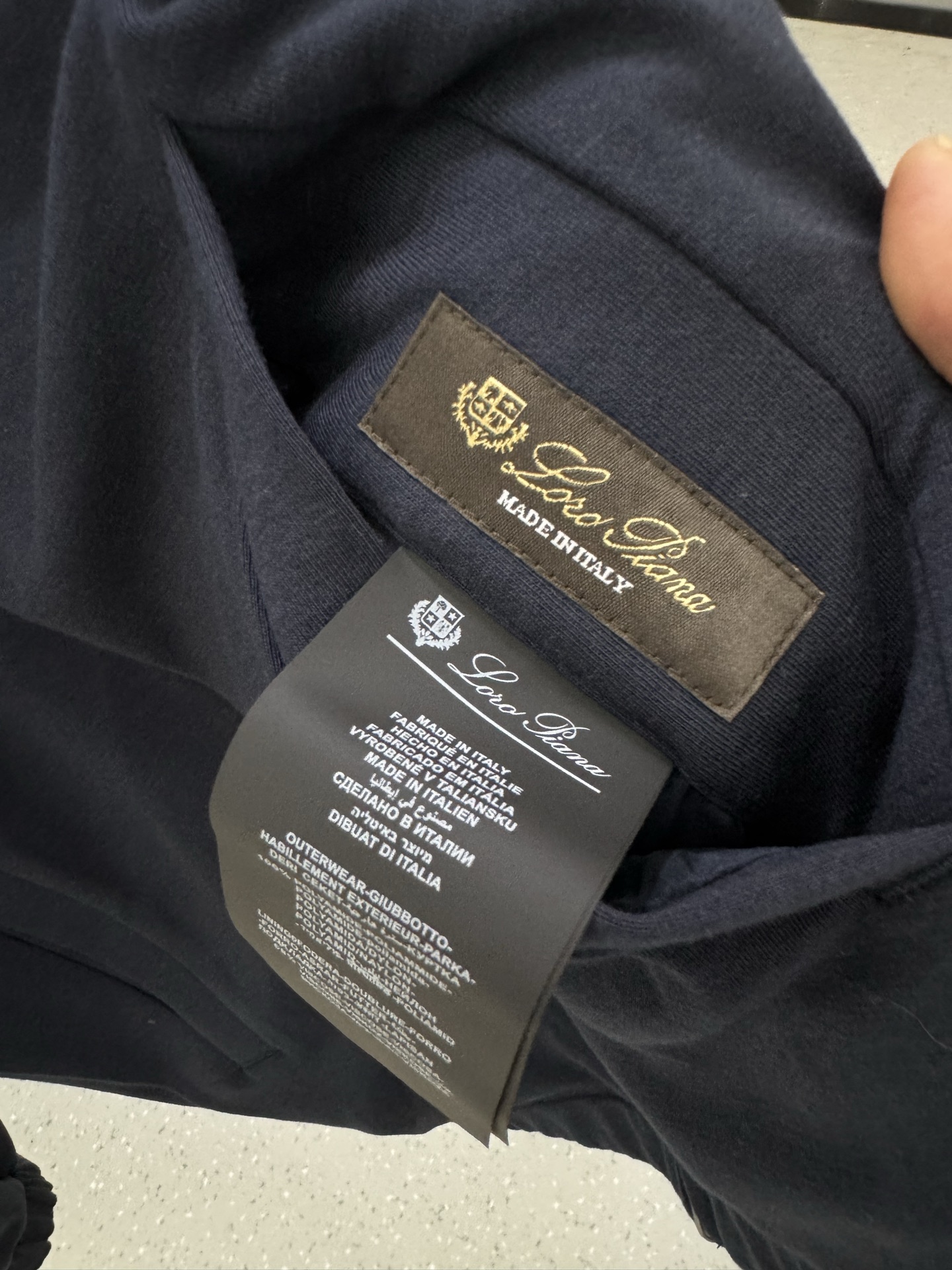 这款衣服是AAAAA 1:1 质量 (非常棒). 使用了和原版一模一样的材料. 商标部分也保持了和洛罗皮亚纳/Loro Piana一样. 图片拍摄是实物衣服拍摄, 您所收到的实物保证和我们图片一模一样.