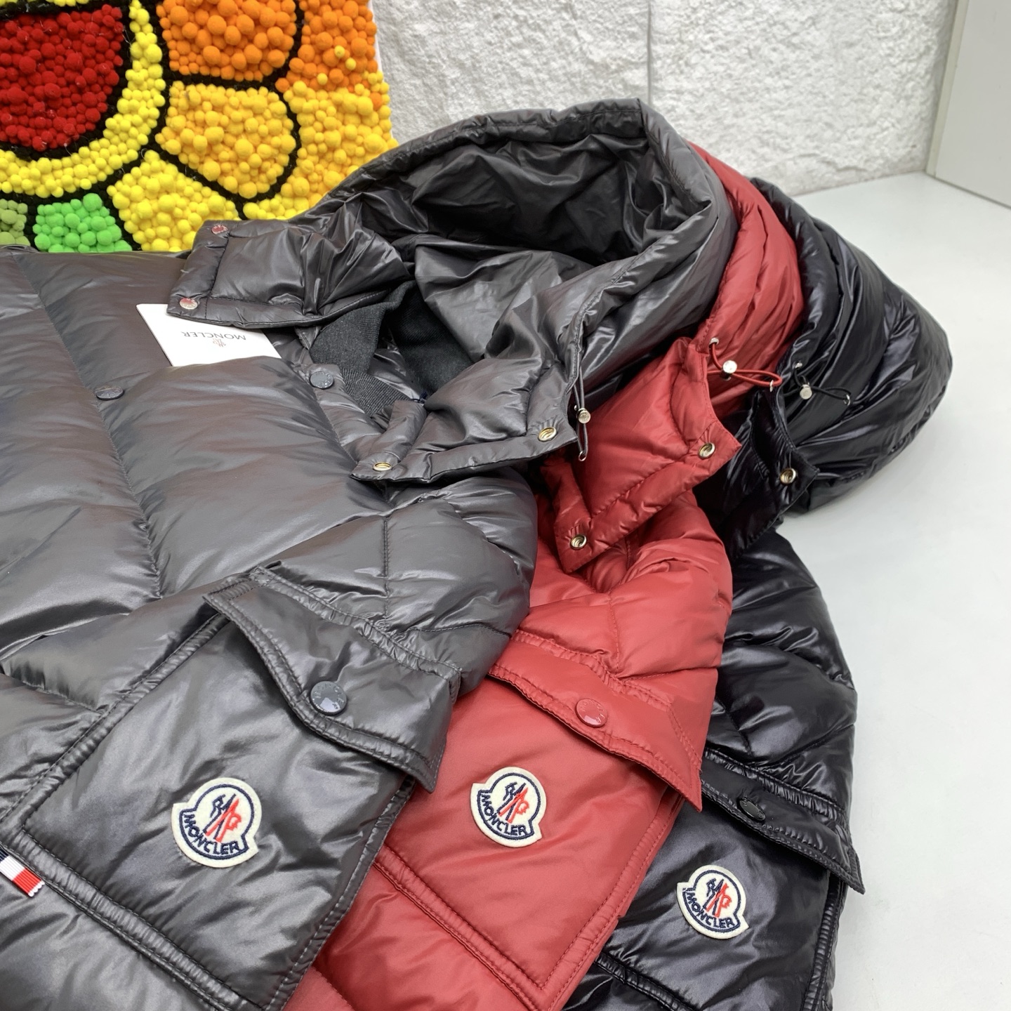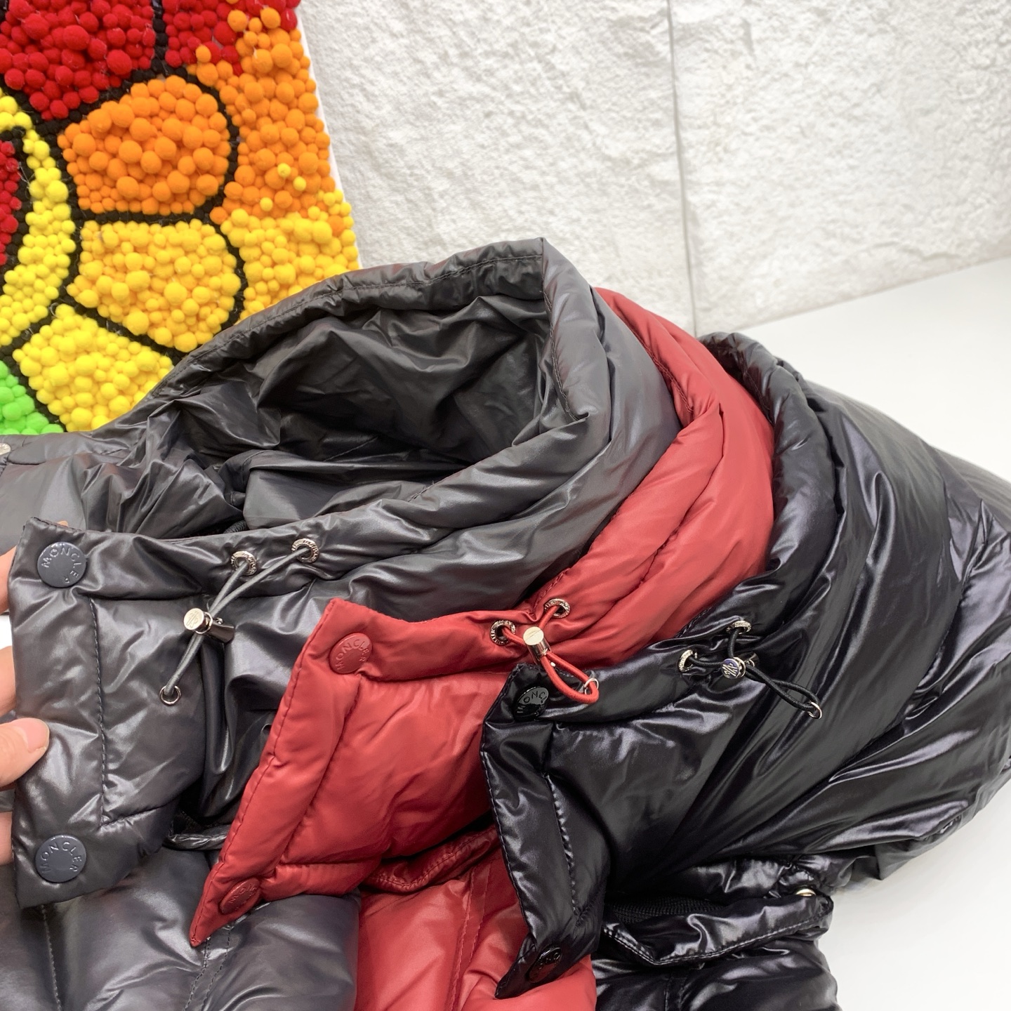 这款衣服是AAAAA 1:1 质量 (非常棒). 使用了和原版一模一样的材料. 商标部分也保持了和盟可睐/moncler一样. 图片拍摄是实物衣服拍摄, 您所收到的实物保证和我们图片一模一样.
