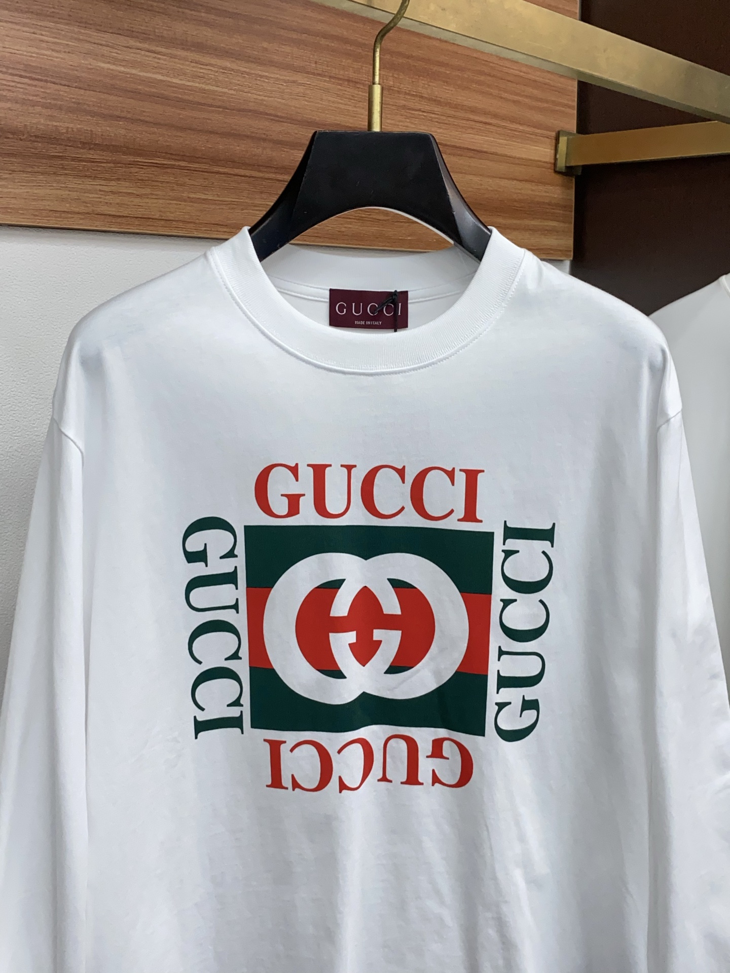 这款衣服是AAAAA 1:1 质量 (非常棒). 使用了和原版一模一样的材料. 商标部分也保持了和古奇/Gucci一样. 图片拍摄是实物衣服拍摄, 您所收到的实物保证和我们图片一模一样.