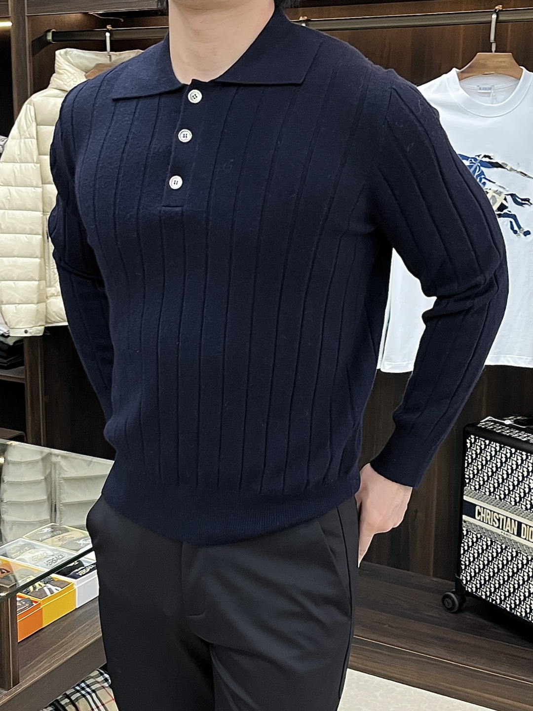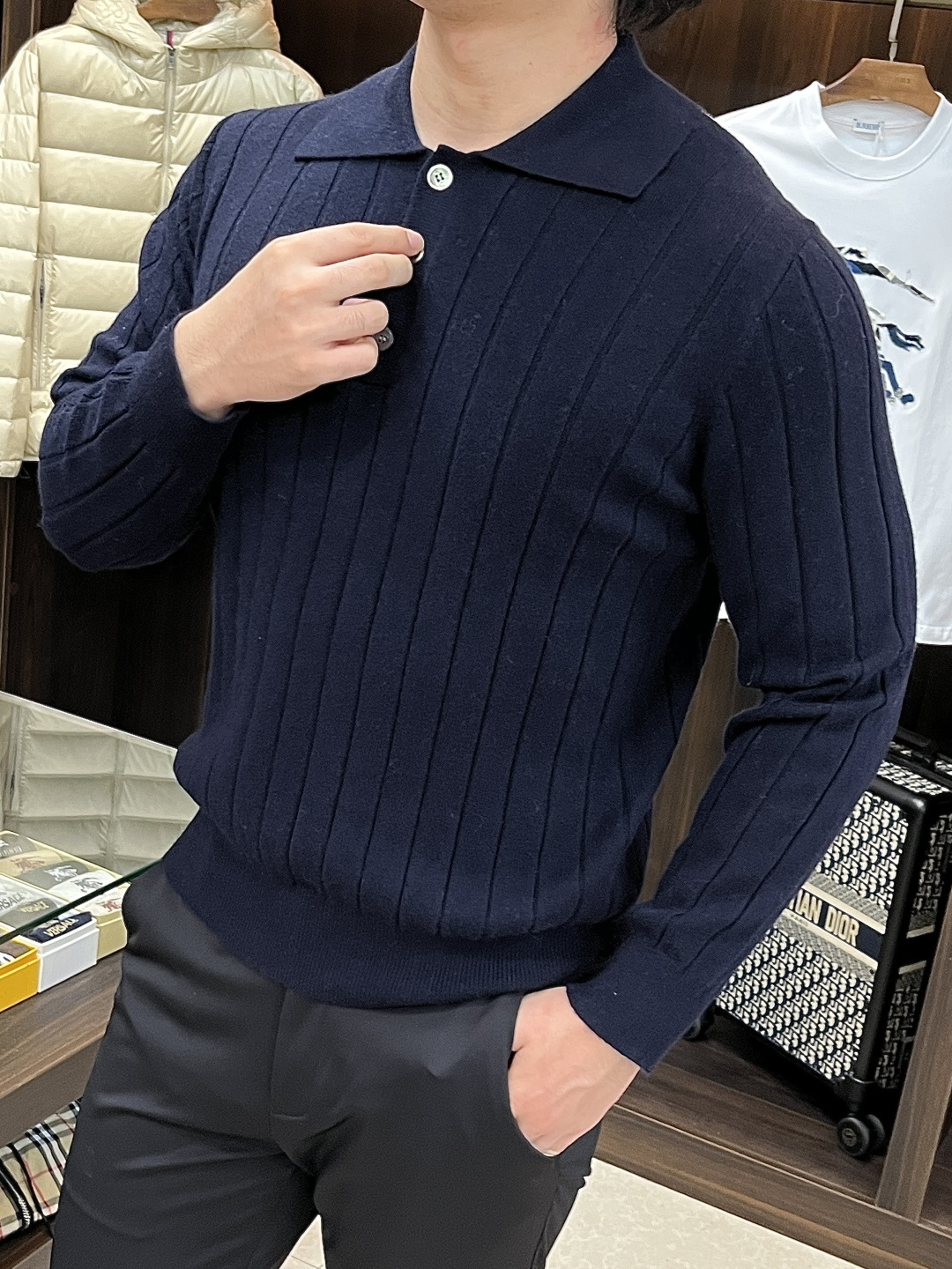 这款衣服是AAAAA 1:1 质量 (非常棒). 使用了和原版一模一样的材料. 商标部分也保持了和Brunello Cucinelli一样. 图片拍摄是实物衣服拍摄, 您所收到的实物保证和我们图片一模一样.
