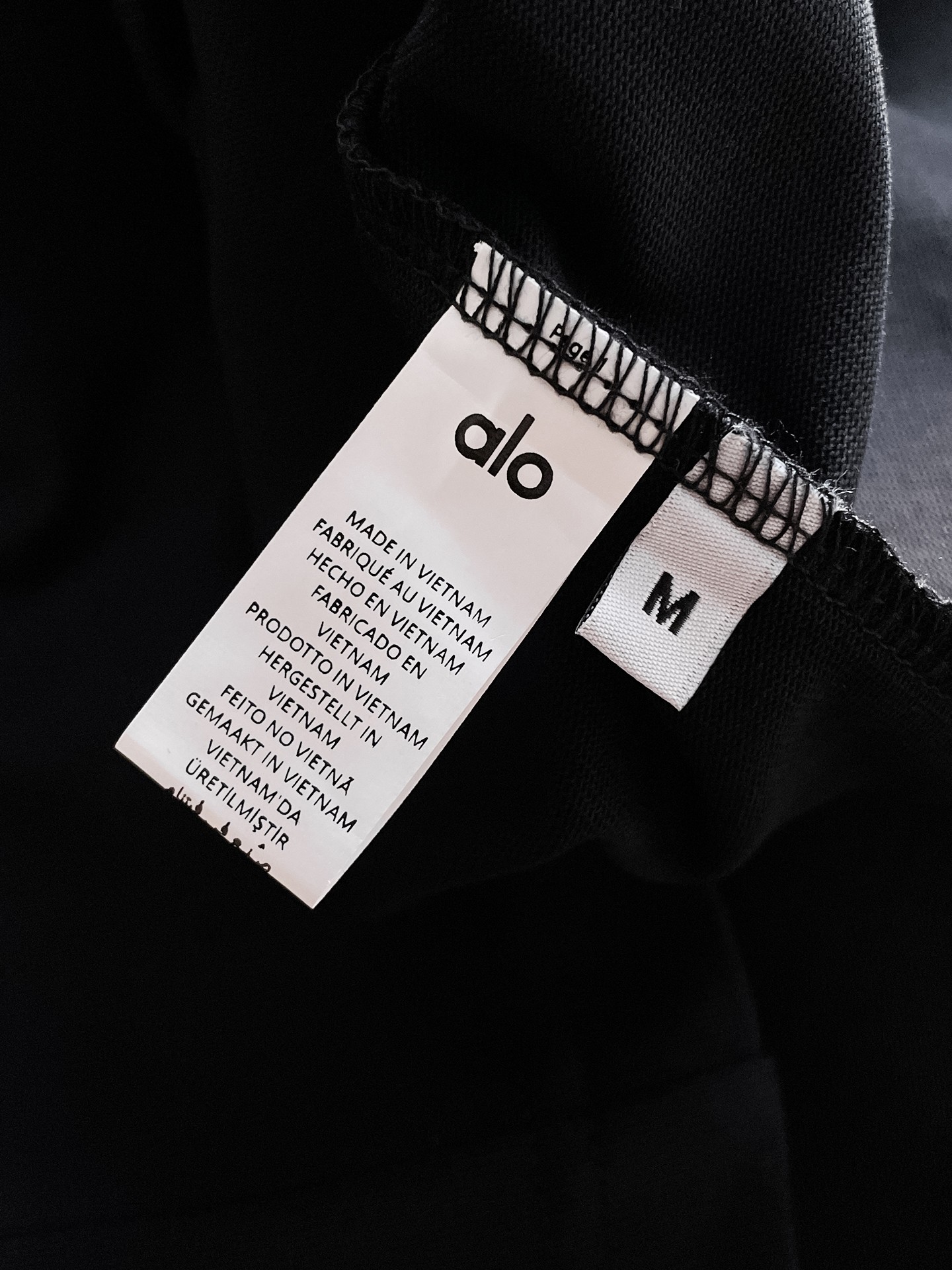 这款衣服是AAAAA 1:1 质量 (非常棒). 使用了和原版一模一样的材料. 商标部分也保持了和Alo Yoga一样. 图片拍摄是实物衣服拍摄, 您所收到的实物保证和我们图片一模一样.