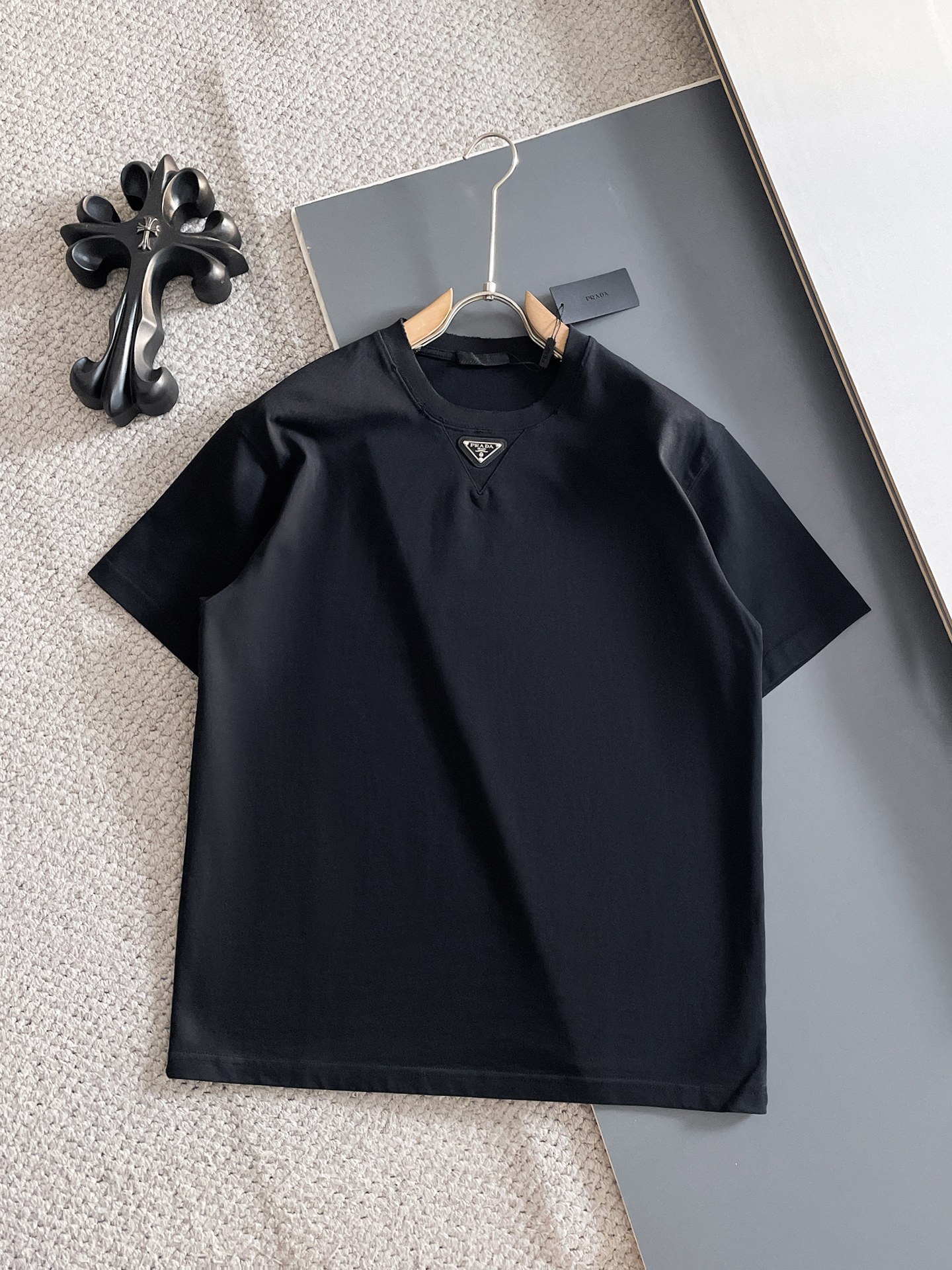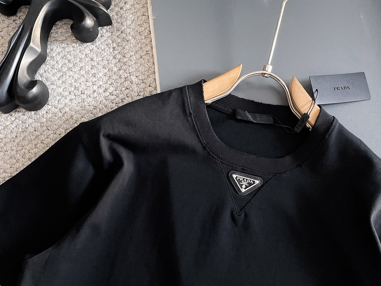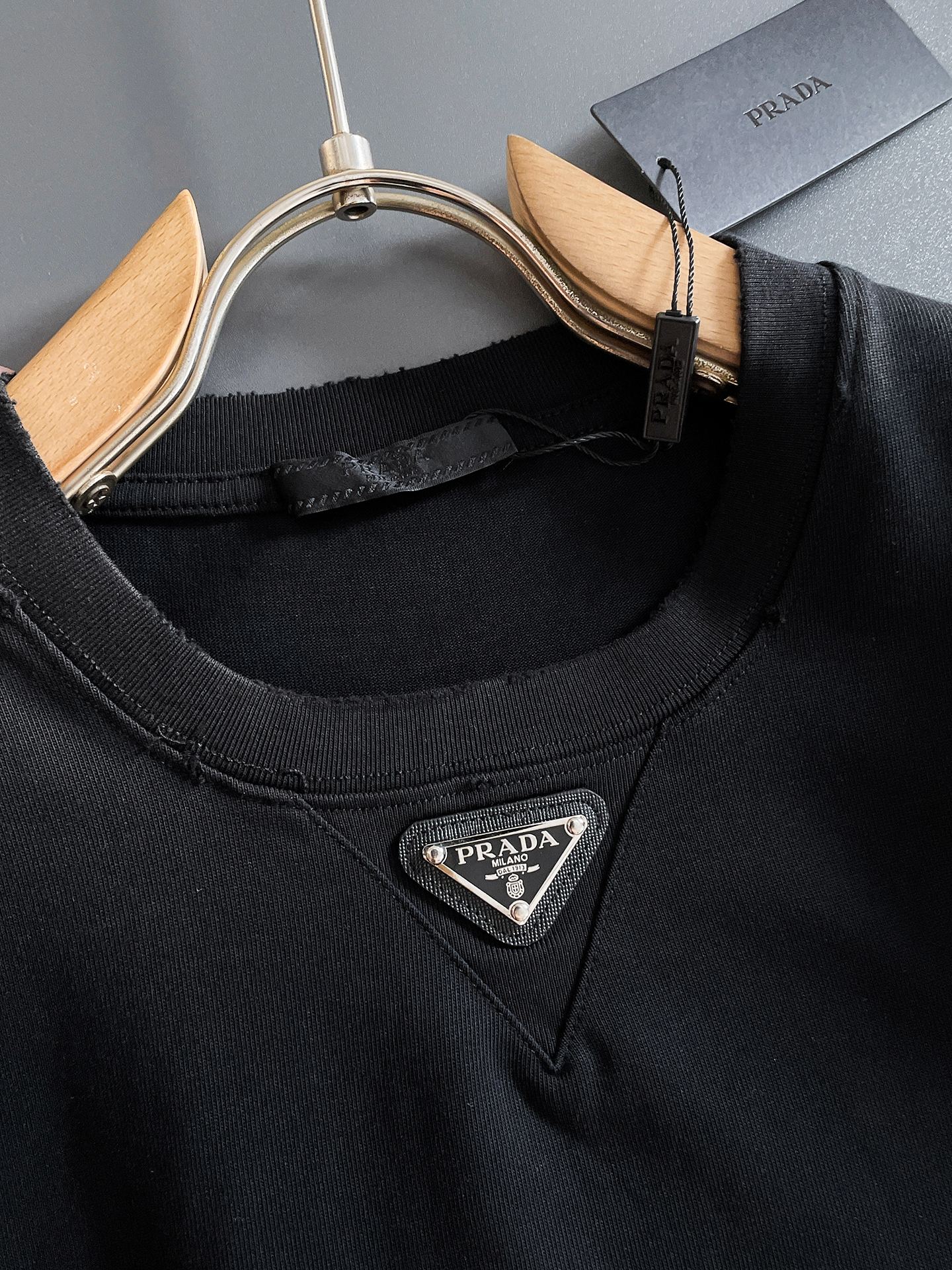 这款衣服是AAAAA 1:1 质量 (非常棒). 使用了和原版一模一样的材料. 商标部分也保持了和普拉达/Prada一样. 图片拍摄是实物衣服拍摄, 您所收到的实物保证和我们图片一模一样.