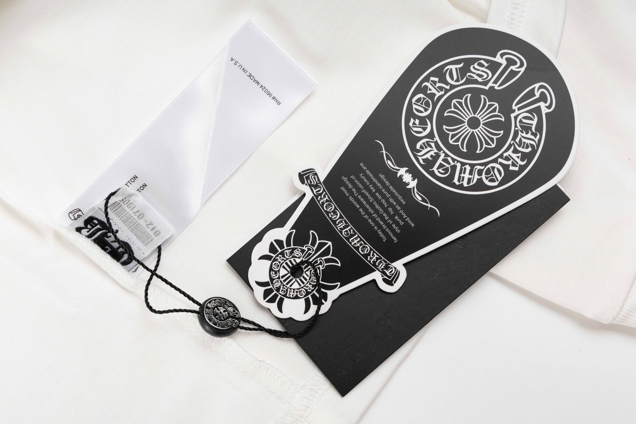 这款衣服是AAAAA 1:1 质量 (非常棒). 使用了和原版一模一样的材料. 商标部分也保持了和克罗心/Chrome Hearts一样. 图片拍摄是实物衣服拍摄, 您所收到的实物保证和我们图片一模一样.