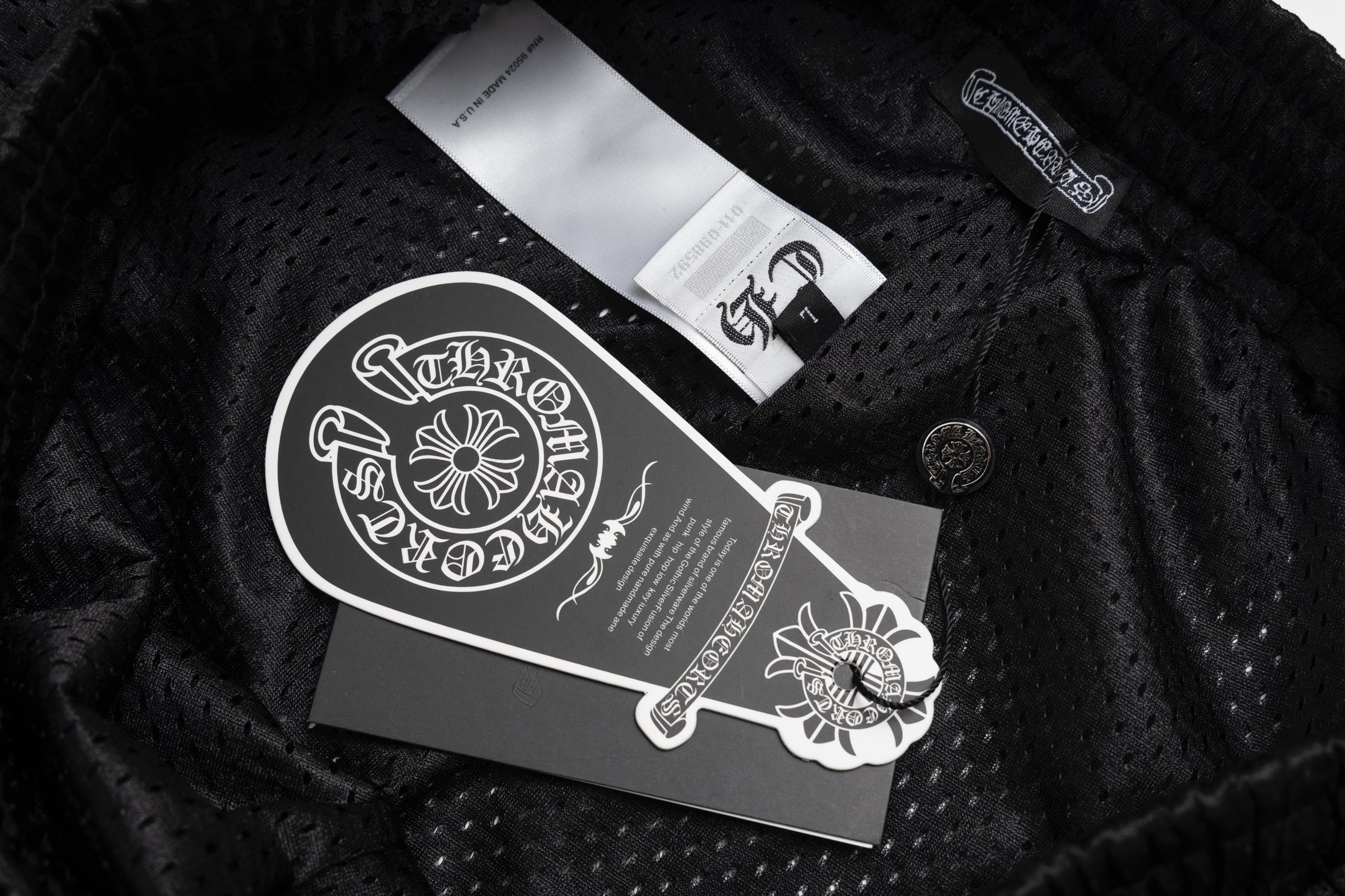 这款衣服是AAAAA 1:1 质量 (非常棒). 使用了和原版一模一样的材料. 商标部分也保持了和克罗心/Chrome Hearts一样. 图片拍摄是实物衣服拍摄, 您所收到的实物保证和我们图片一模一样.