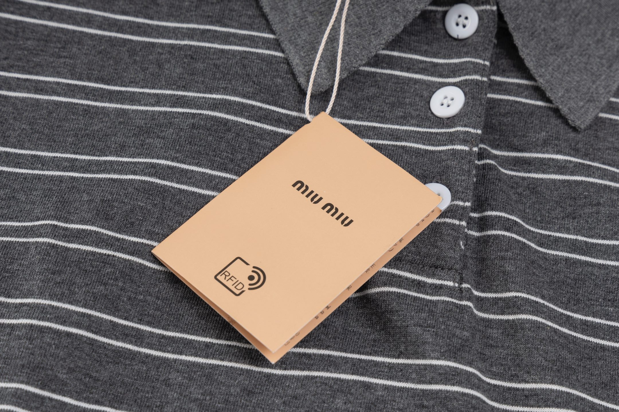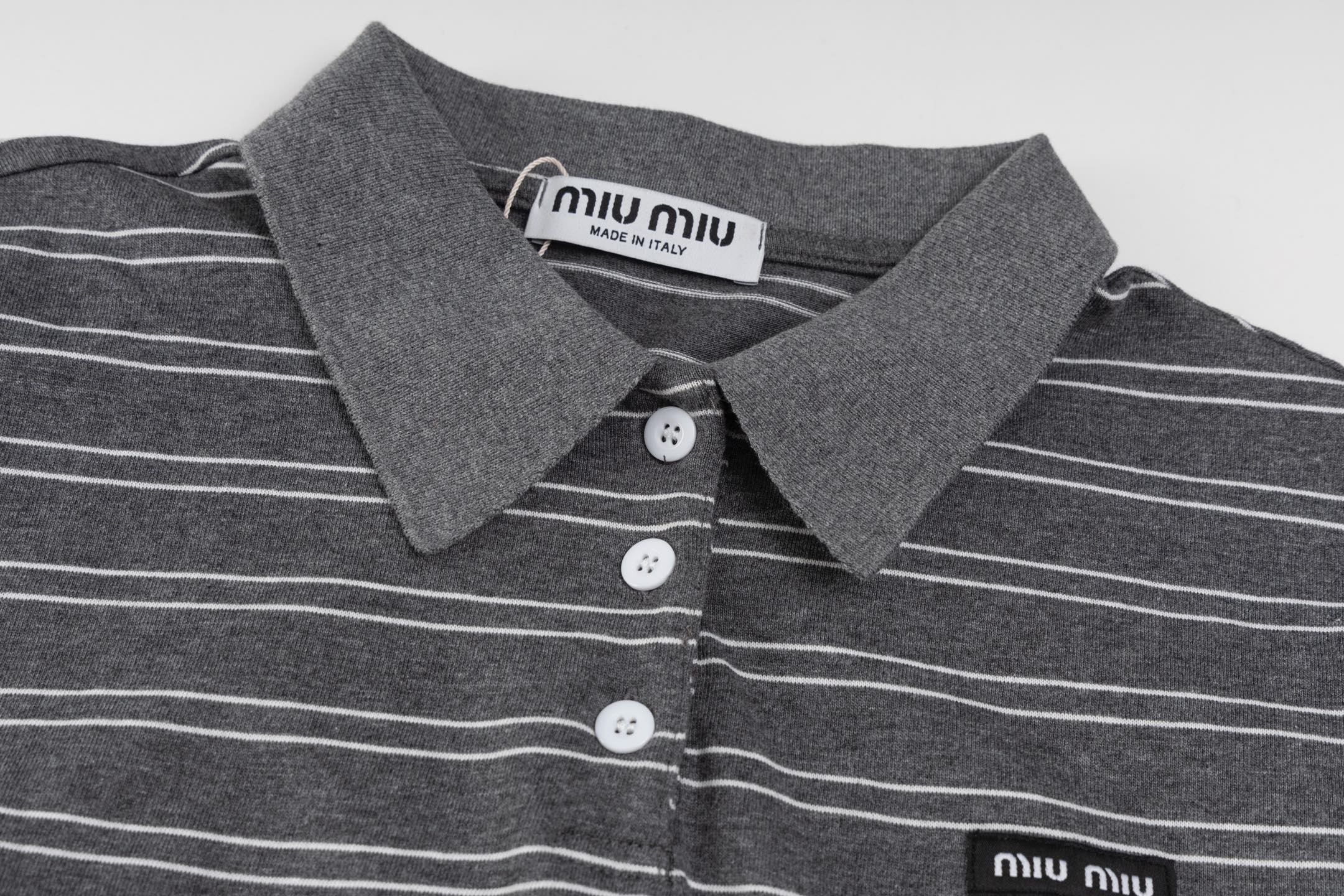 这款衣服是AAAAA 1:1 质量 (非常棒). 使用了和原版一模一样的材料. 商标部分也保持了和缪缪/Miu Miu一样. 图片拍摄是实物衣服拍摄, 您所收到的实物保证和我们图片一模一样.