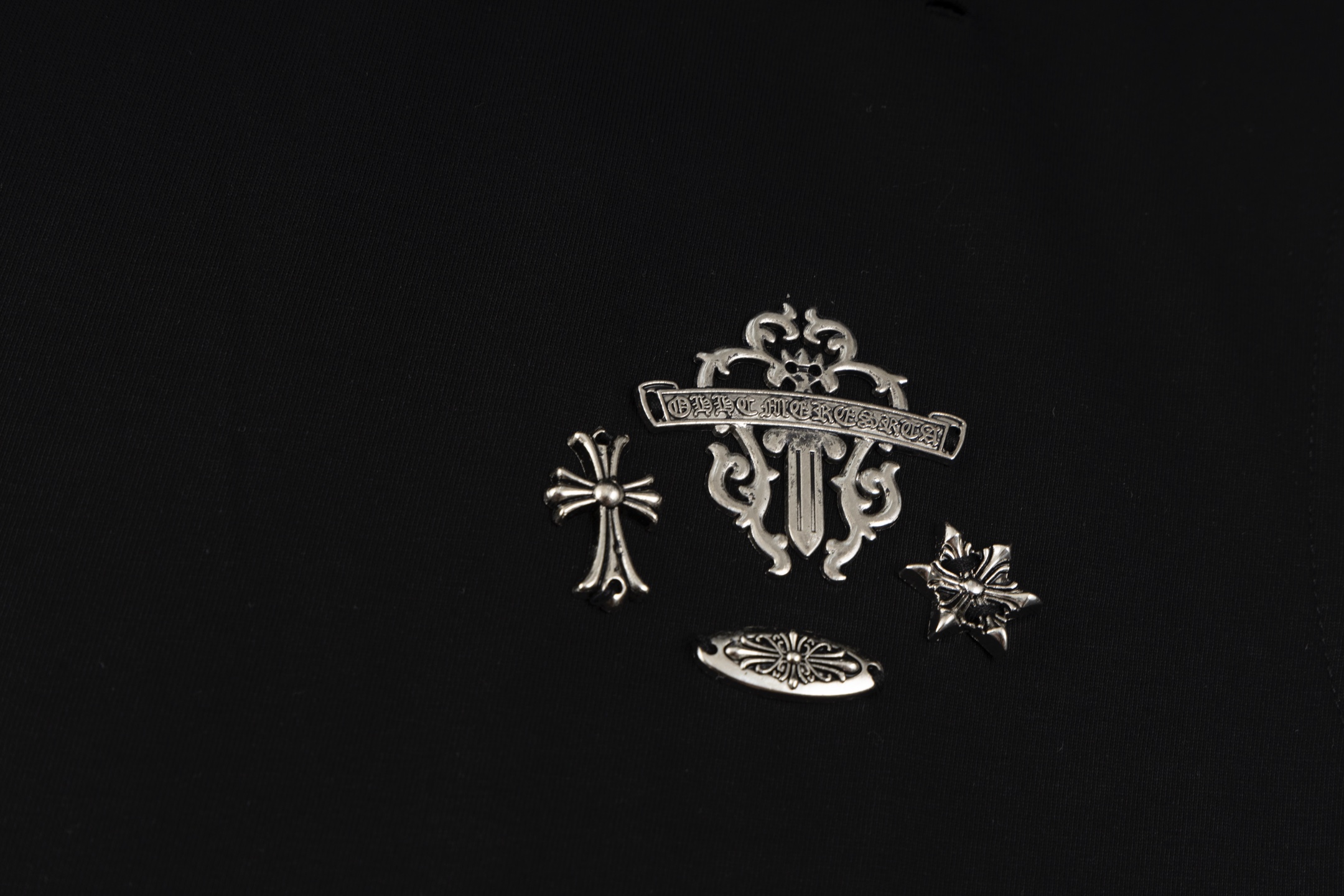 这款衣服是AAAAA 1:1 质量 (非常棒). 使用了和原版一模一样的材料. 商标部分也保持了和克罗心/Chrome Hearts一样. 图片拍摄是实物衣服拍摄, 您所收到的实物保证和我们图片一模一样.