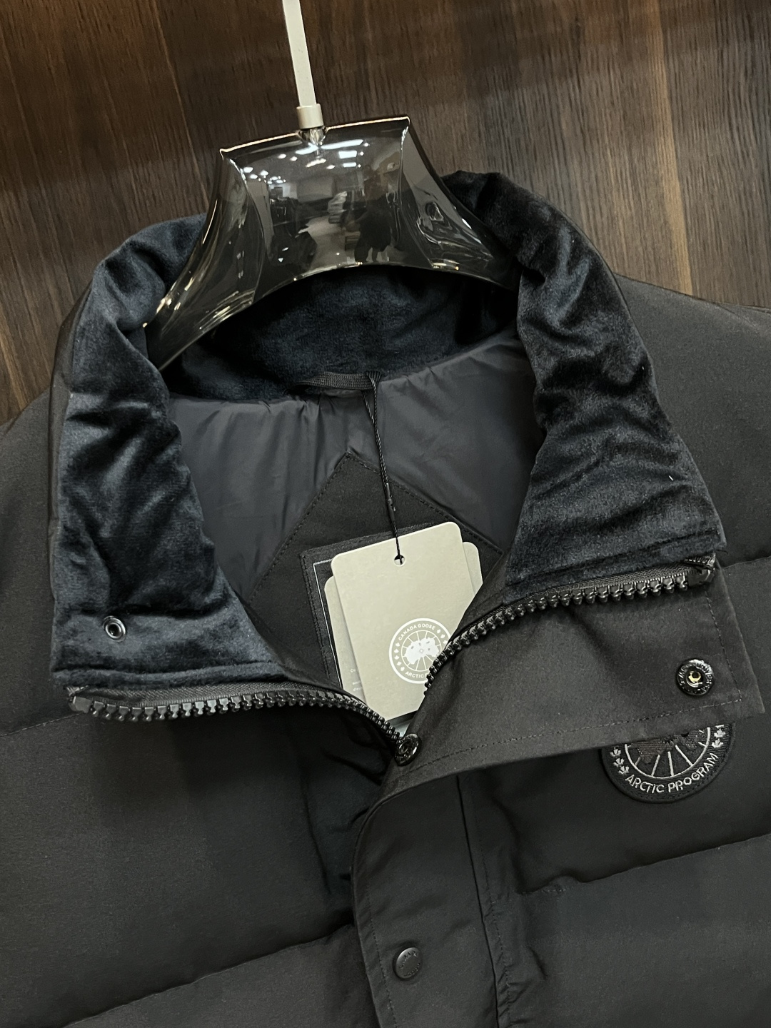 这款衣服是AAAAA 1:1 质量 (非常棒). 使用了和原版一模一样的材料. 商标部分也保持了和Canada Goose一样. 图片拍摄是实物衣服拍摄, 您所收到的实物保证和我们图片一模一样.