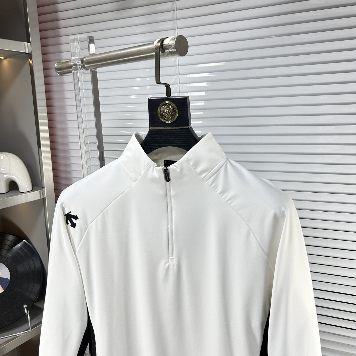 这款衣服是AAAAA 1:1 质量 (非常棒). 使用了和原版一模一样的材料. 商标部分也保持了和Descente一样. 图片拍摄是实物衣服拍摄, 您所收到的实物保证和我们图片一模一样.