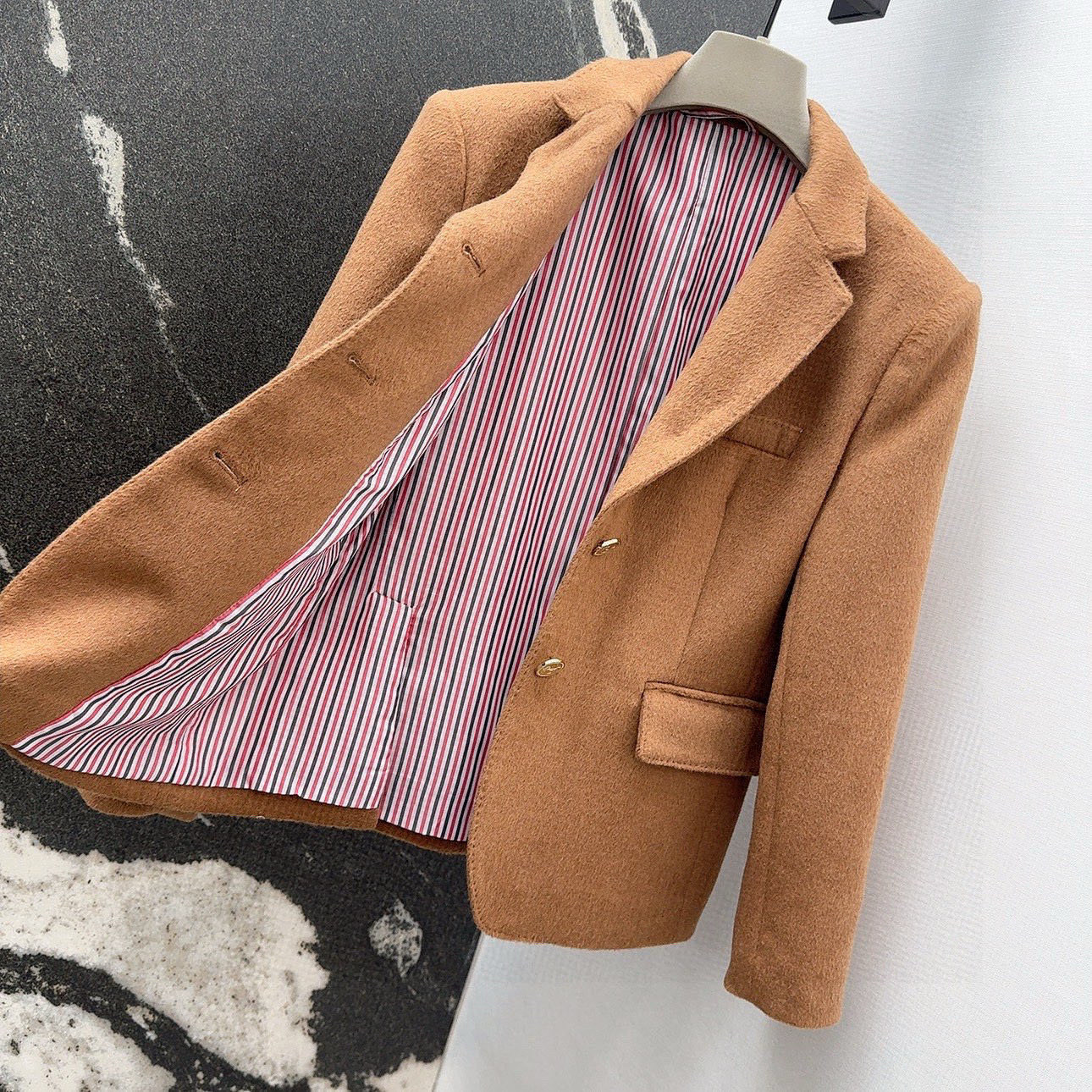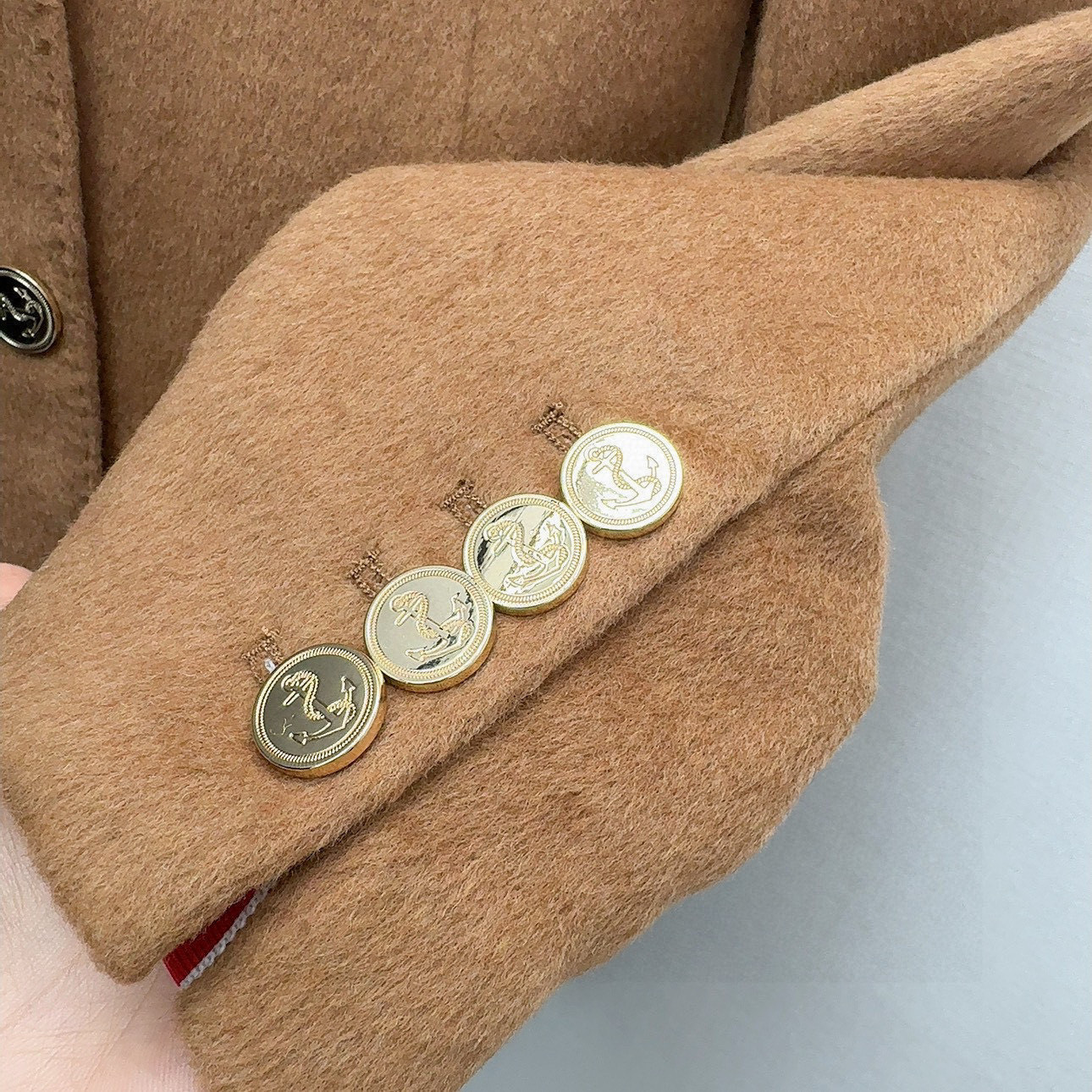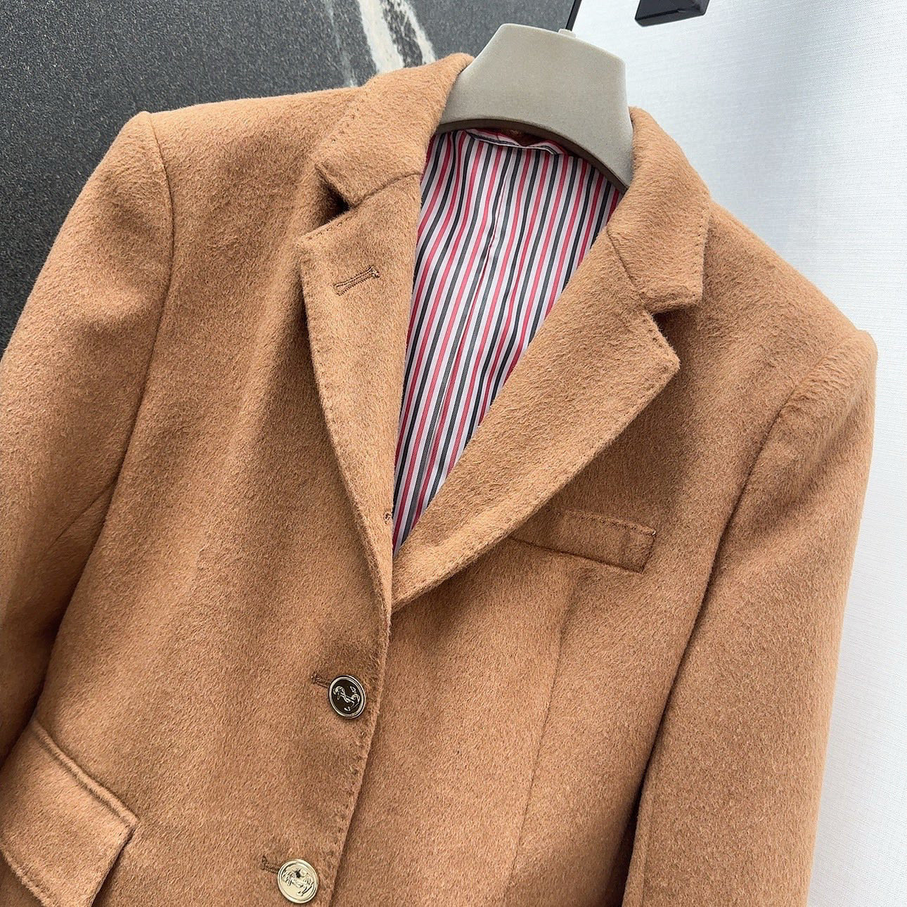 这款衣服是AAAAA 1:1 质量 (非常棒). 使用了和原版一模一样的材料. 商标部分也保持了和汤姆布朗/Thom Browne一样. 图片拍摄是实物衣服拍摄, 您所收到的实物保证和我们图片一模一样.
