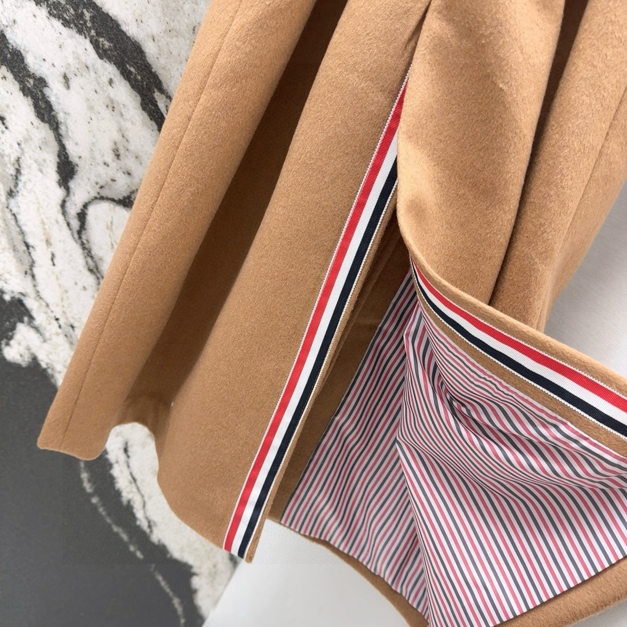 这款衣服是AAAAA 1:1 质量 (非常棒). 使用了和原版一模一样的材料. 商标部分也保持了和汤姆布朗/Thom Browne一样. 图片拍摄是实物衣服拍摄, 您所收到的实物保证和我们图片一模一样.