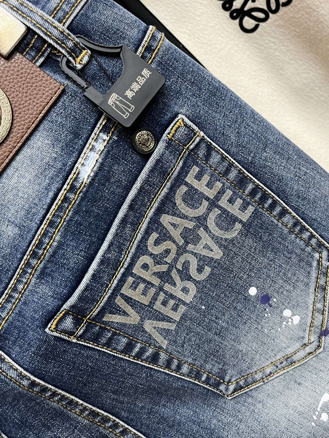 这款衣服是AAAAA 1:1 质量 (非常棒). 使用了和原版一模一样的材料. 商标部分也保持了和范思哲/Versace一样. 图片拍摄是实物衣服拍摄, 您所收到的实物保证和我们图片一模一样.
