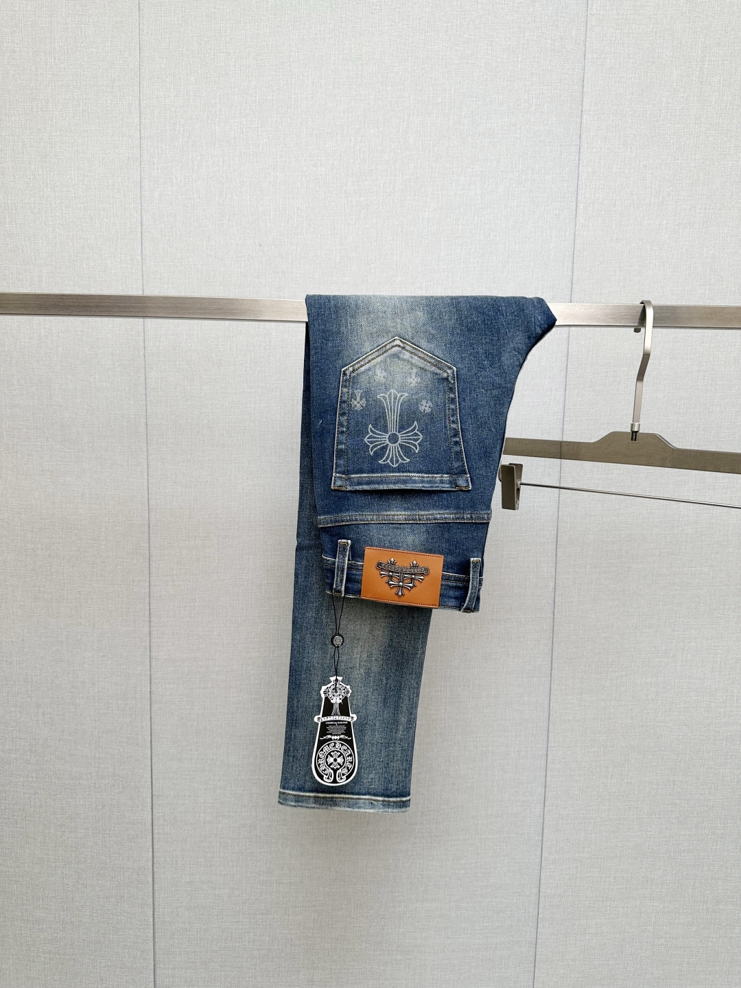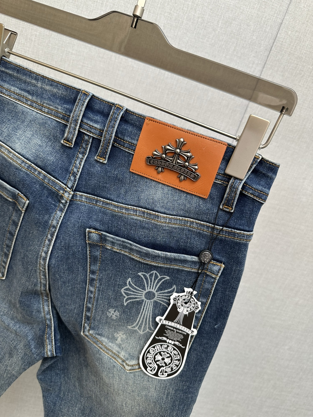 这款衣服是AAAAA 1:1 质量 (非常棒). 使用了和原版一模一样的材料. 商标部分也保持了和克罗心/Chrome Hearts一样. 图片拍摄是实物衣服拍摄, 您所收到的实物保证和我们图片一模一样.