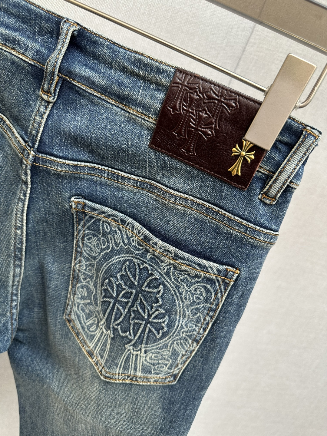 这款衣服是AAAAA 1:1 质量 (非常棒). 使用了和原版一模一样的材料. 商标部分也保持了和克罗心/Chrome Hearts一样. 图片拍摄是实物衣服拍摄, 您所收到的实物保证和我们图片一模一样.