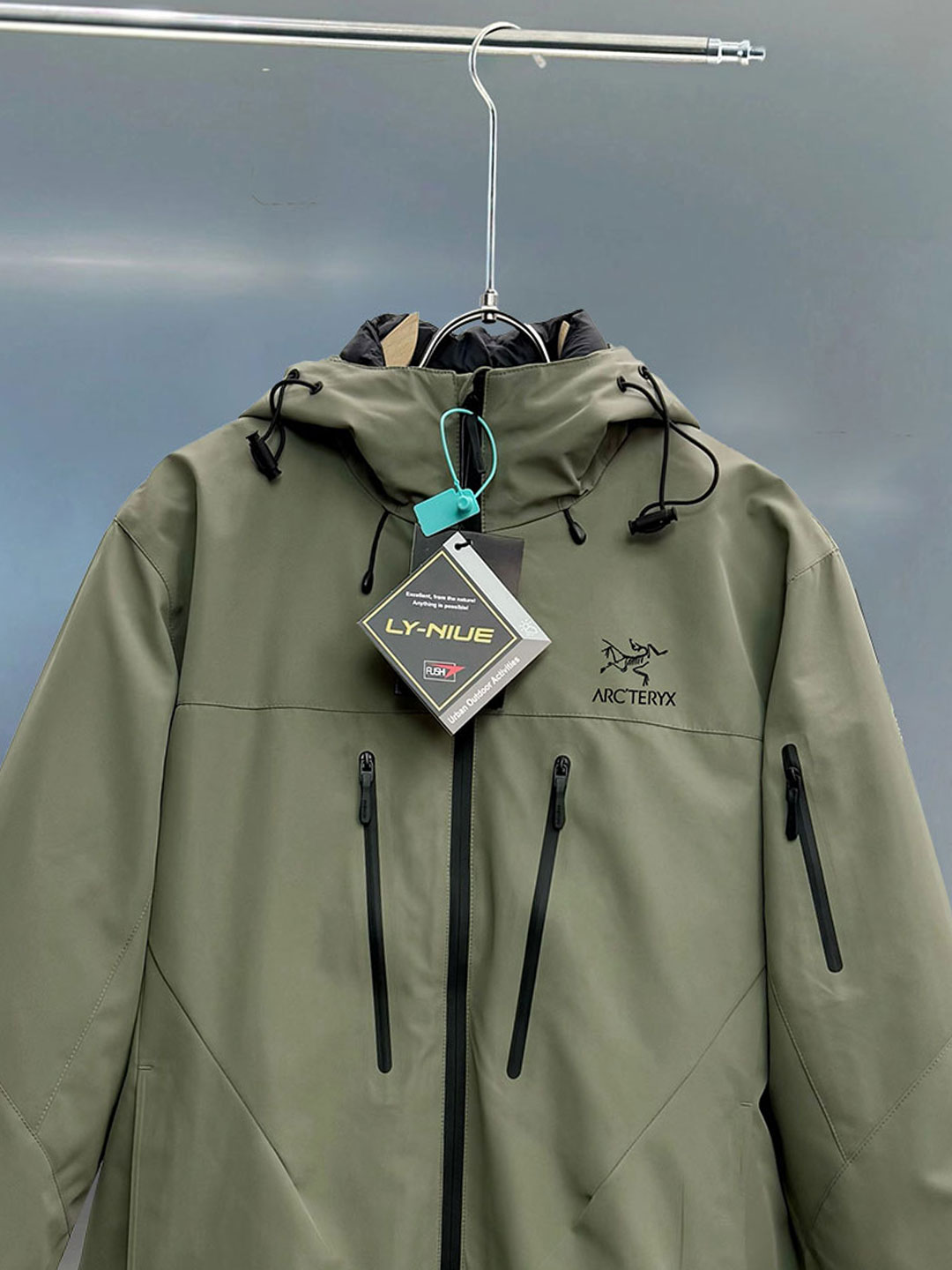 这款衣服是AAAAA 1:1 质量 (非常棒). 使用了和原版一模一样的材料. 商标部分也保持了和ARC'TERYX一样. 图片拍摄是实物衣服拍摄, 您所收到的实物保证和我们图片一模一样.