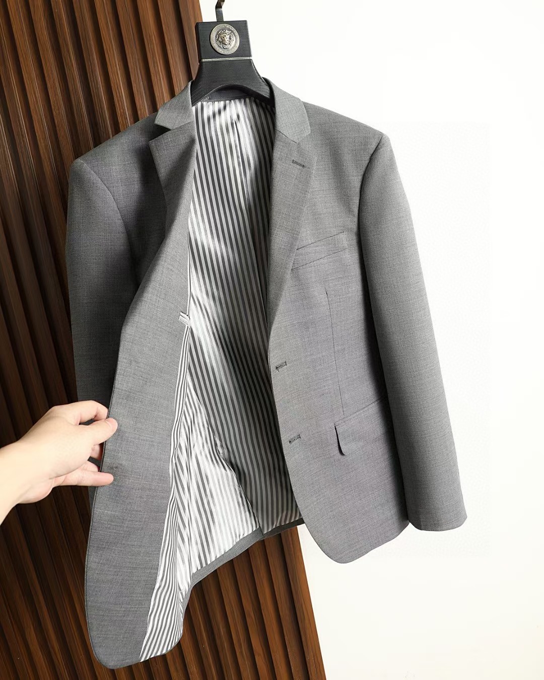 这款衣服是AAAAA 1:1 质量 (非常棒). 使用了和原版一模一样的材料. 商标部分也保持了和汤姆布朗/Thom Browne一样. 图片拍摄是实物衣服拍摄, 您所收到的实物保证和我们图片一模一样.