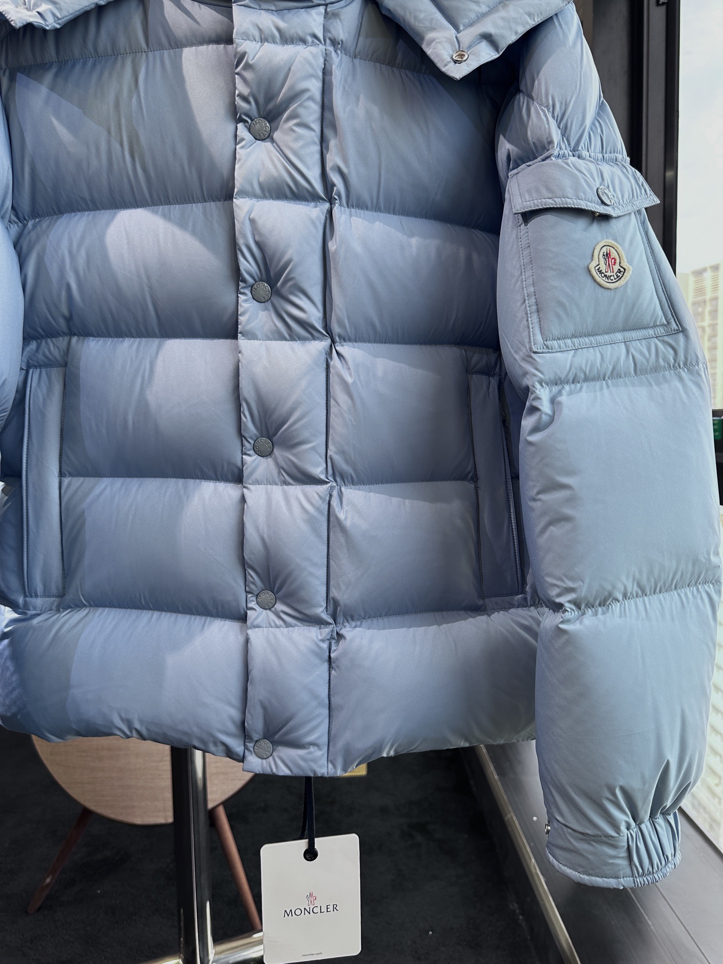 这款衣服是AAAAA 1:1 质量 (非常棒). 使用了和原版一模一样的材料. 商标部分也保持了和盟可睐/moncler一样. 图片拍摄是实物衣服拍摄, 您所收到的实物保证和我们图片一模一样.