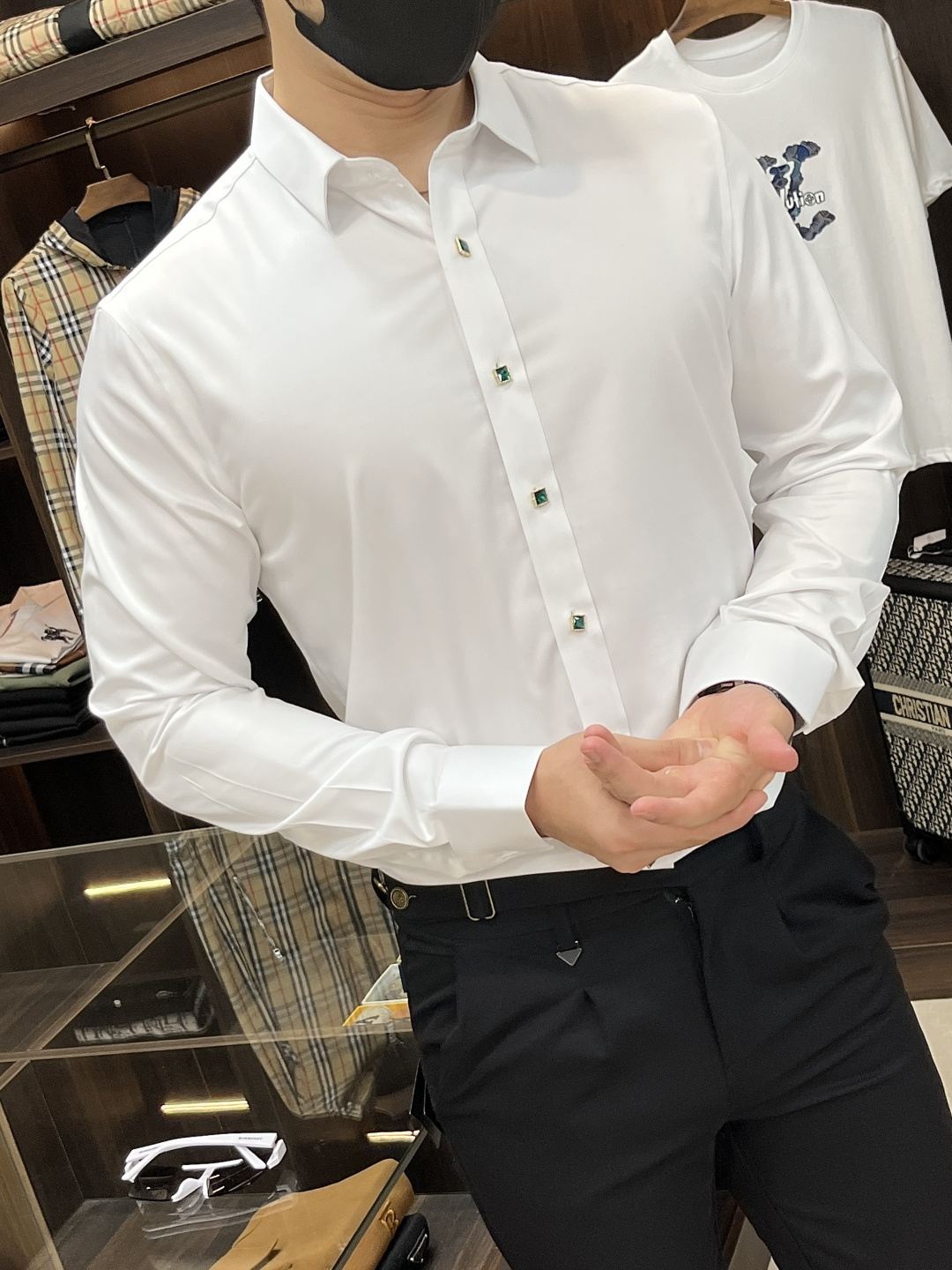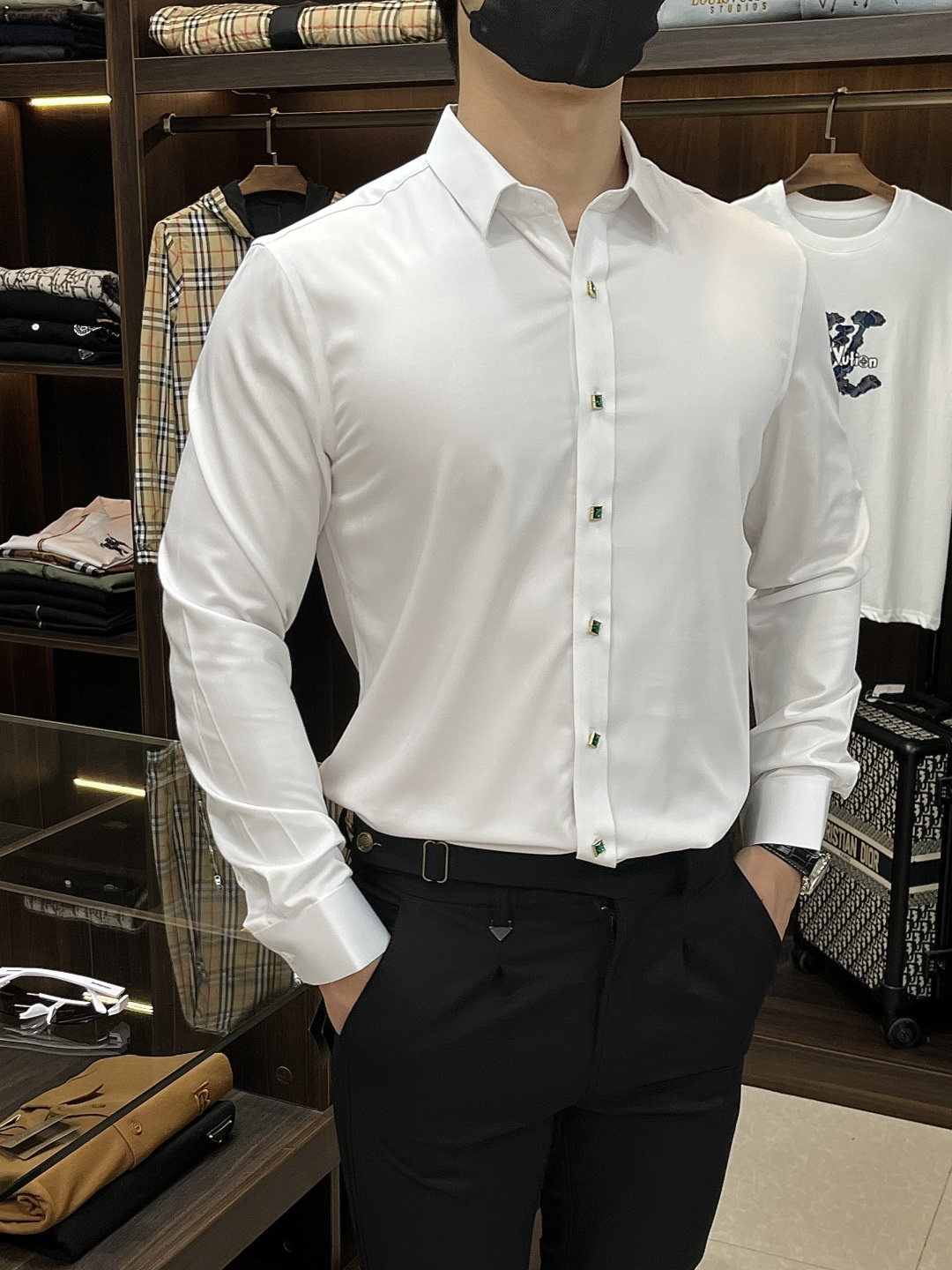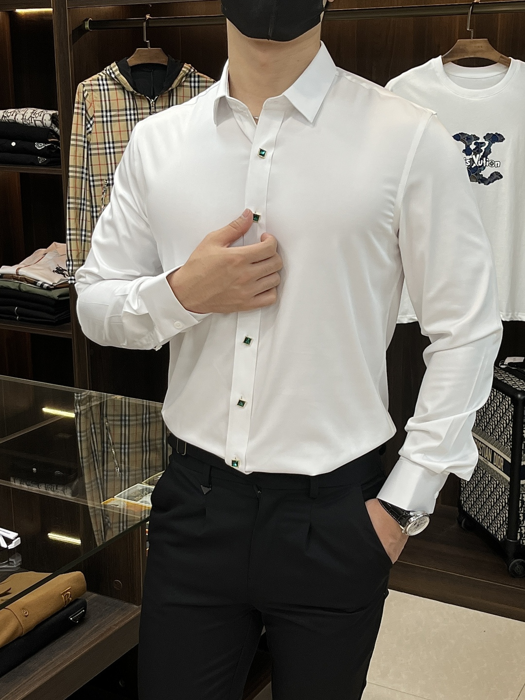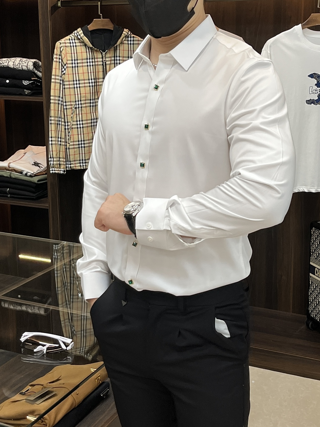 这款衣服是AAAAA 1:1 质量 (非常棒). 使用了和原版一模一样的材料. 商标部分也保持了和阿玛尼/Armani一样. 图片拍摄是实物衣服拍摄, 您所收到的实物保证和我们图片一模一样.