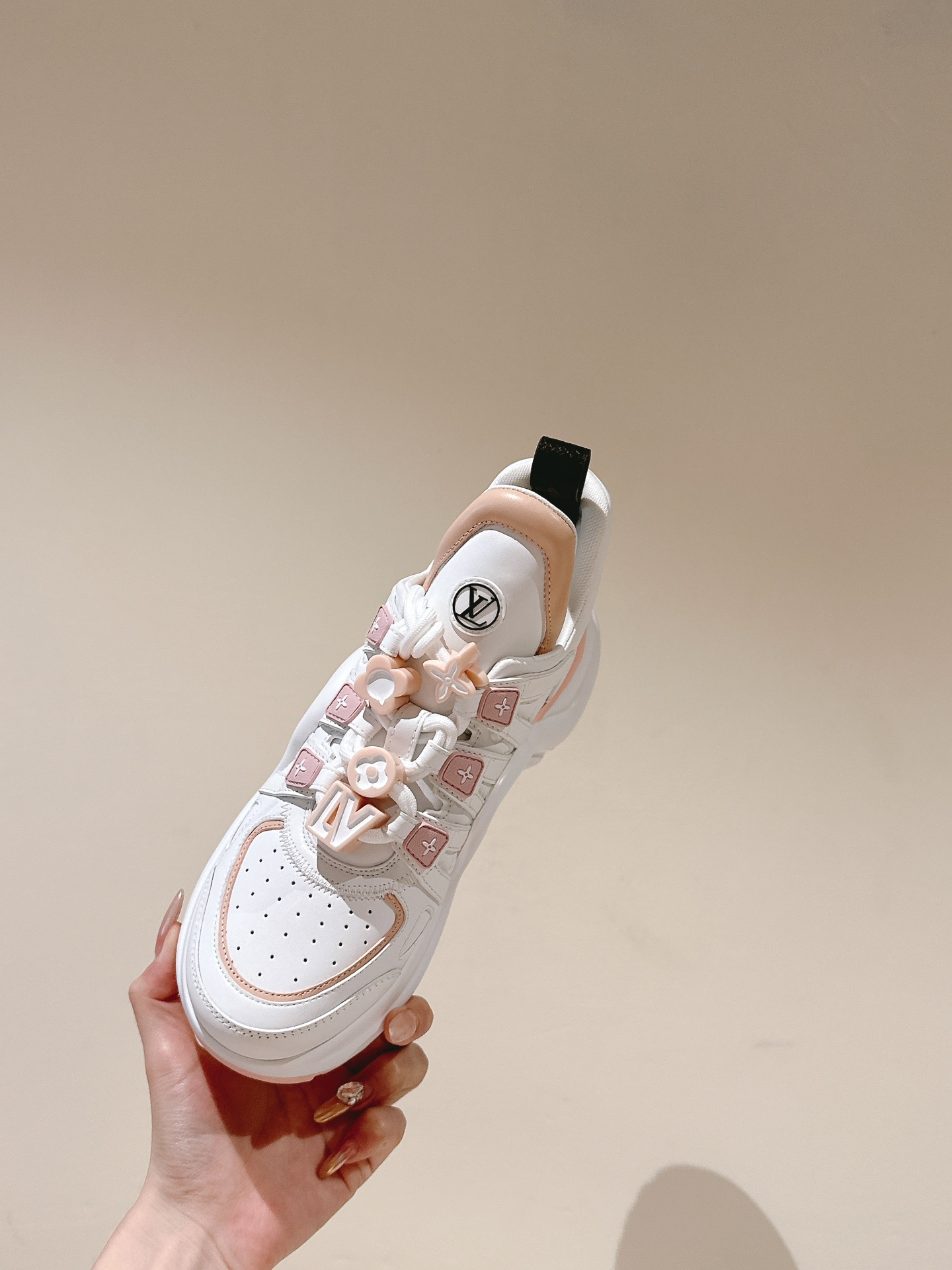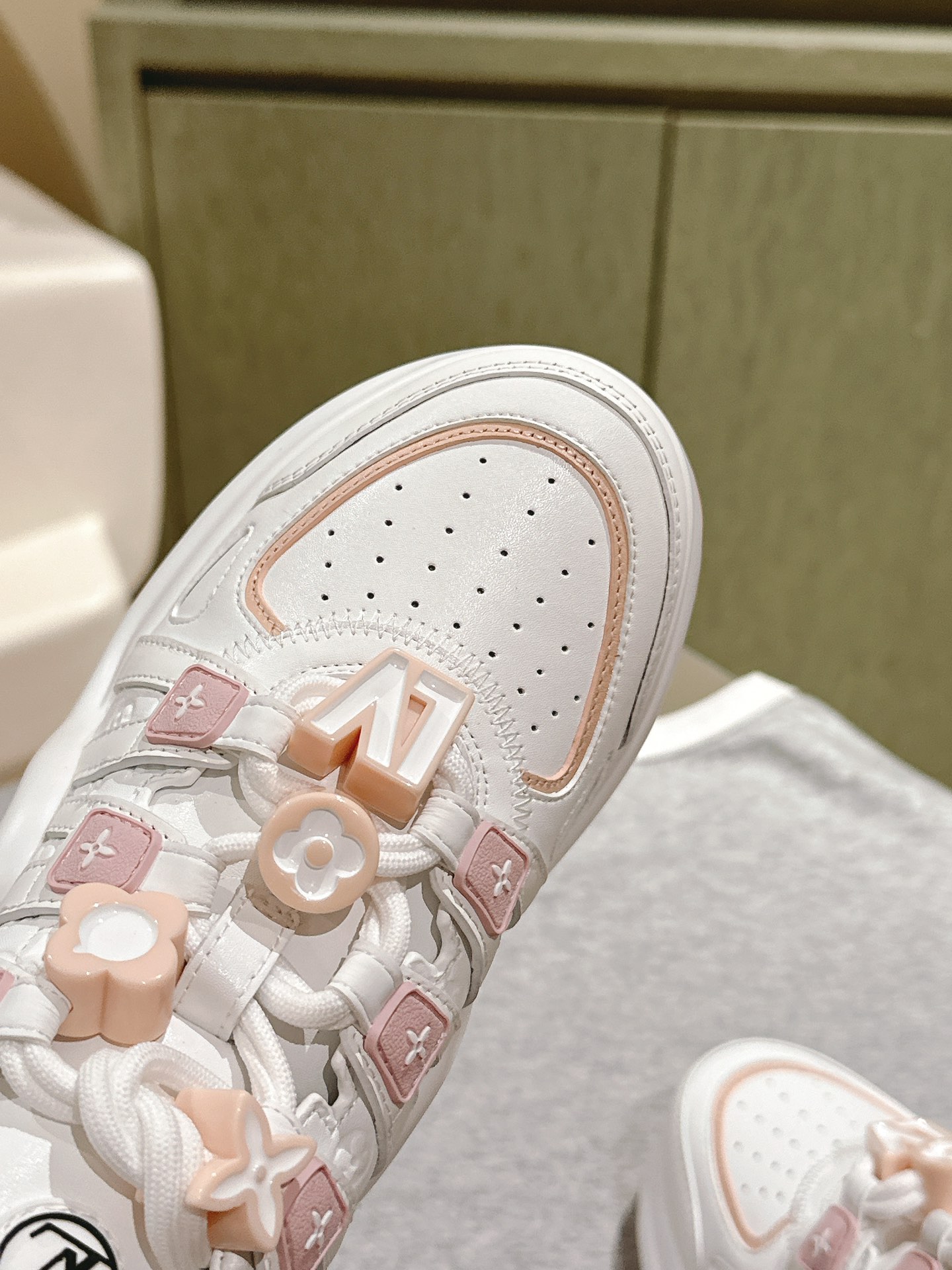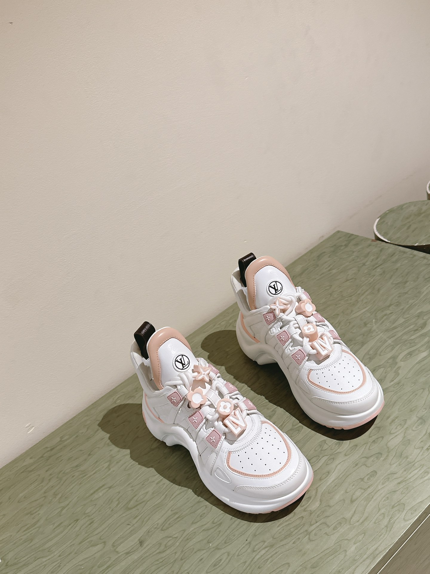 这款鞋子是AAAAA 1:1 质量 (非常棒). 使用了和原版一模一样的材料. 商标部分也保持了和路易威登/Louis Vuitton一样. 图片拍摄是实物鞋子拍摄, 您所收到的实物保证和我们图片一模一样.