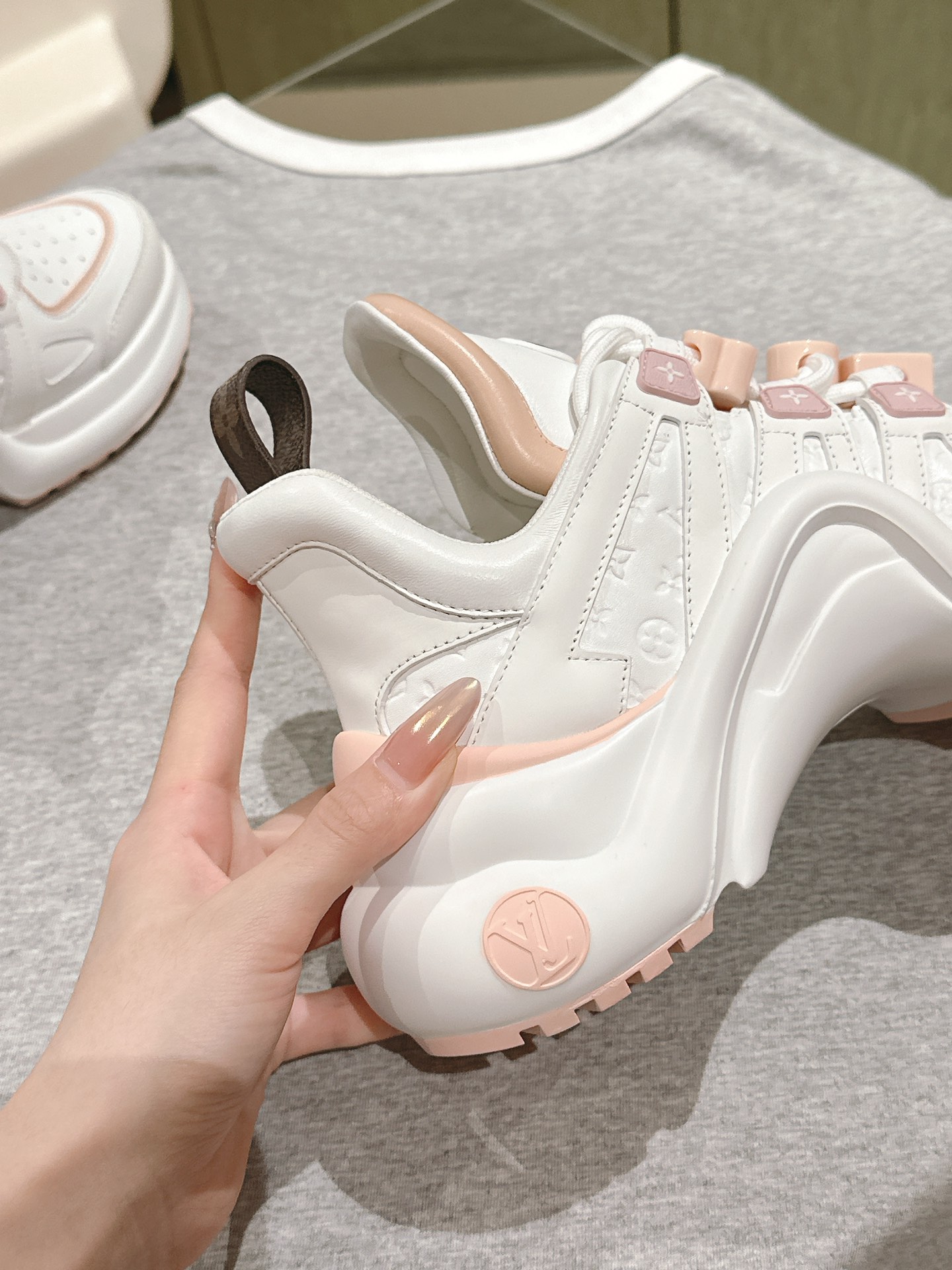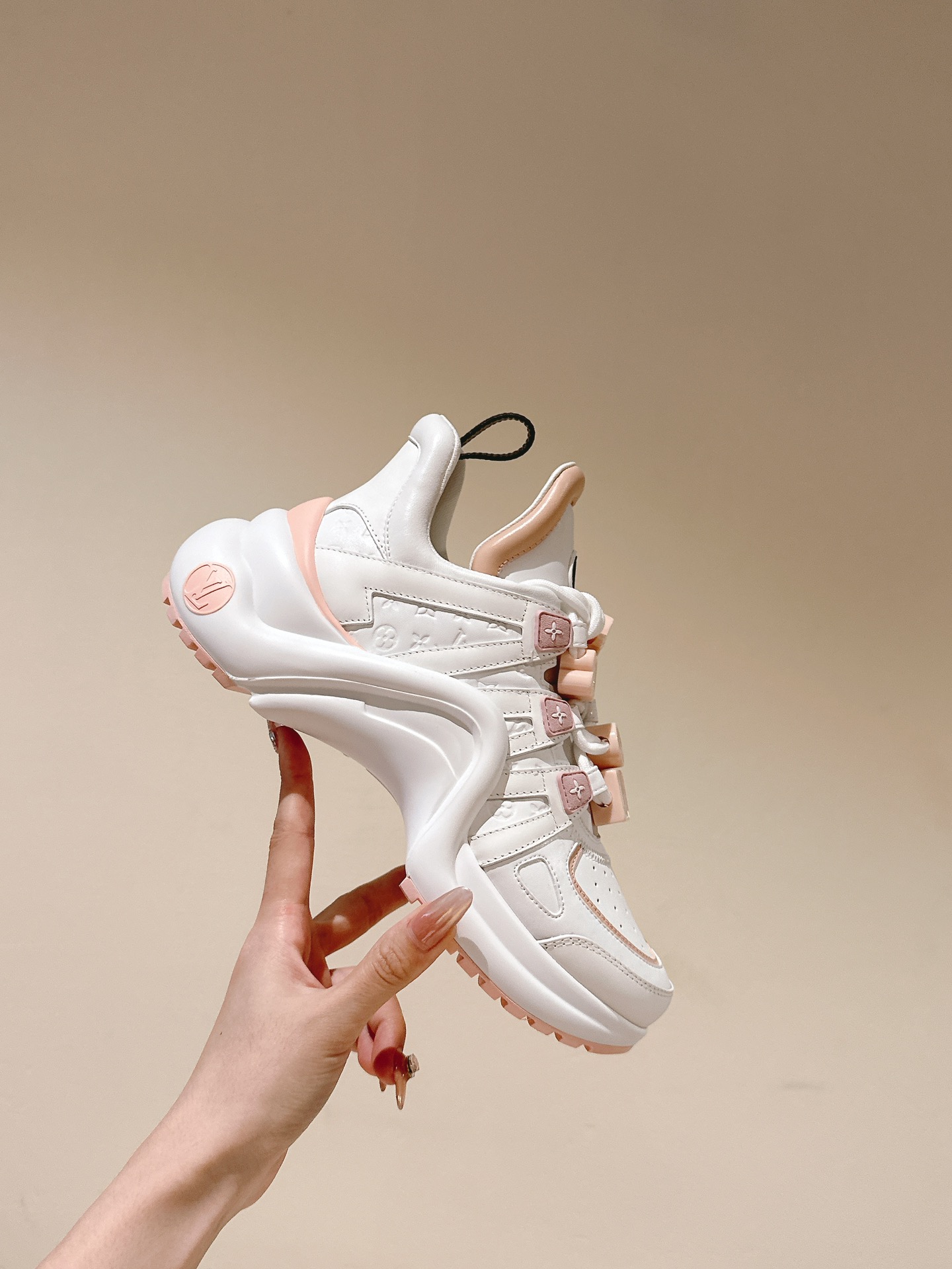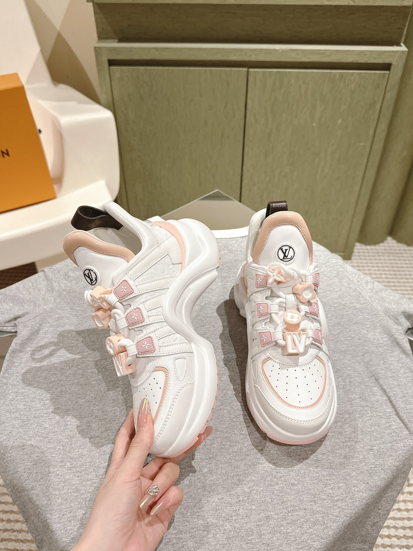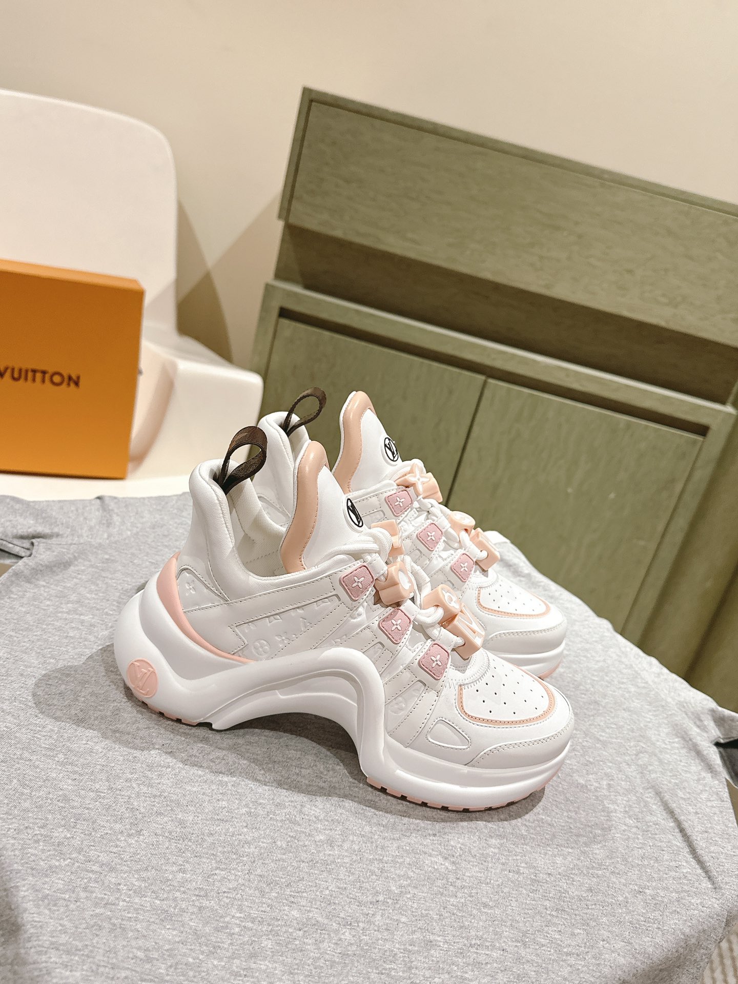 这款鞋子是AAAAA 1:1 质量 (非常棒). 使用了和原版一模一样的材料. 商标部分也保持了和路易威登/Louis Vuitton一样. 图片拍摄是实物鞋子拍摄, 您所收到的实物保证和我们图片一模一样.