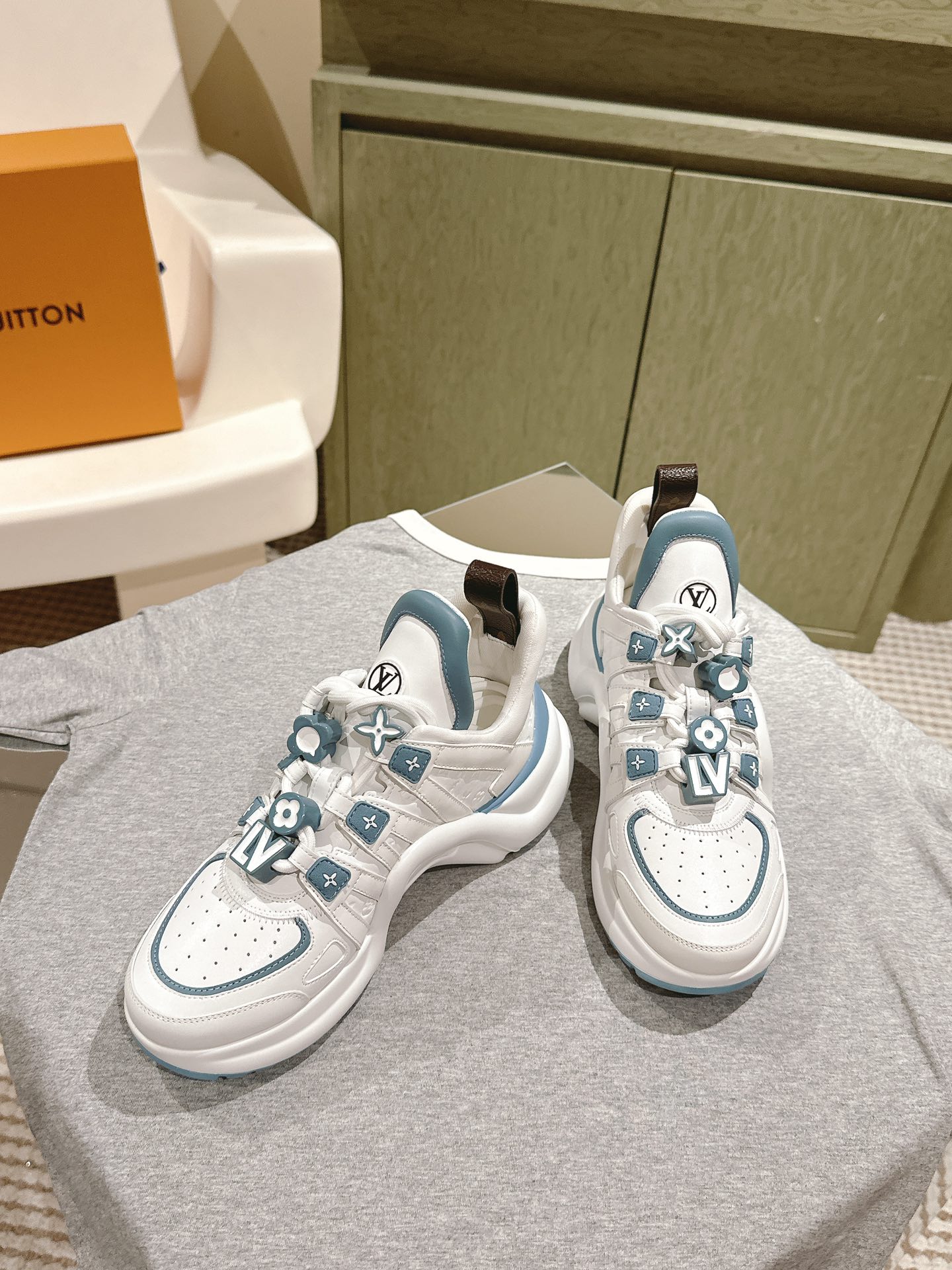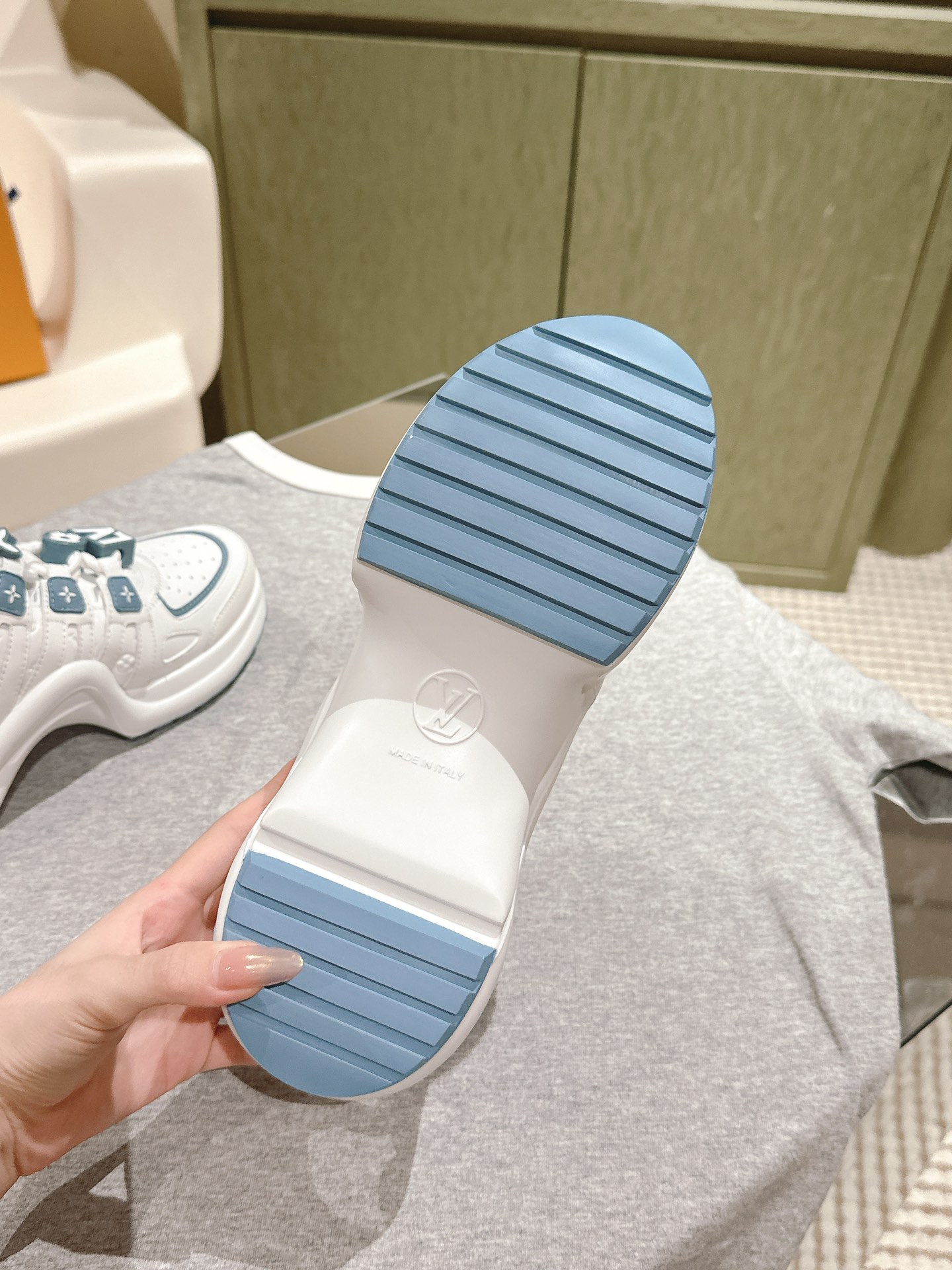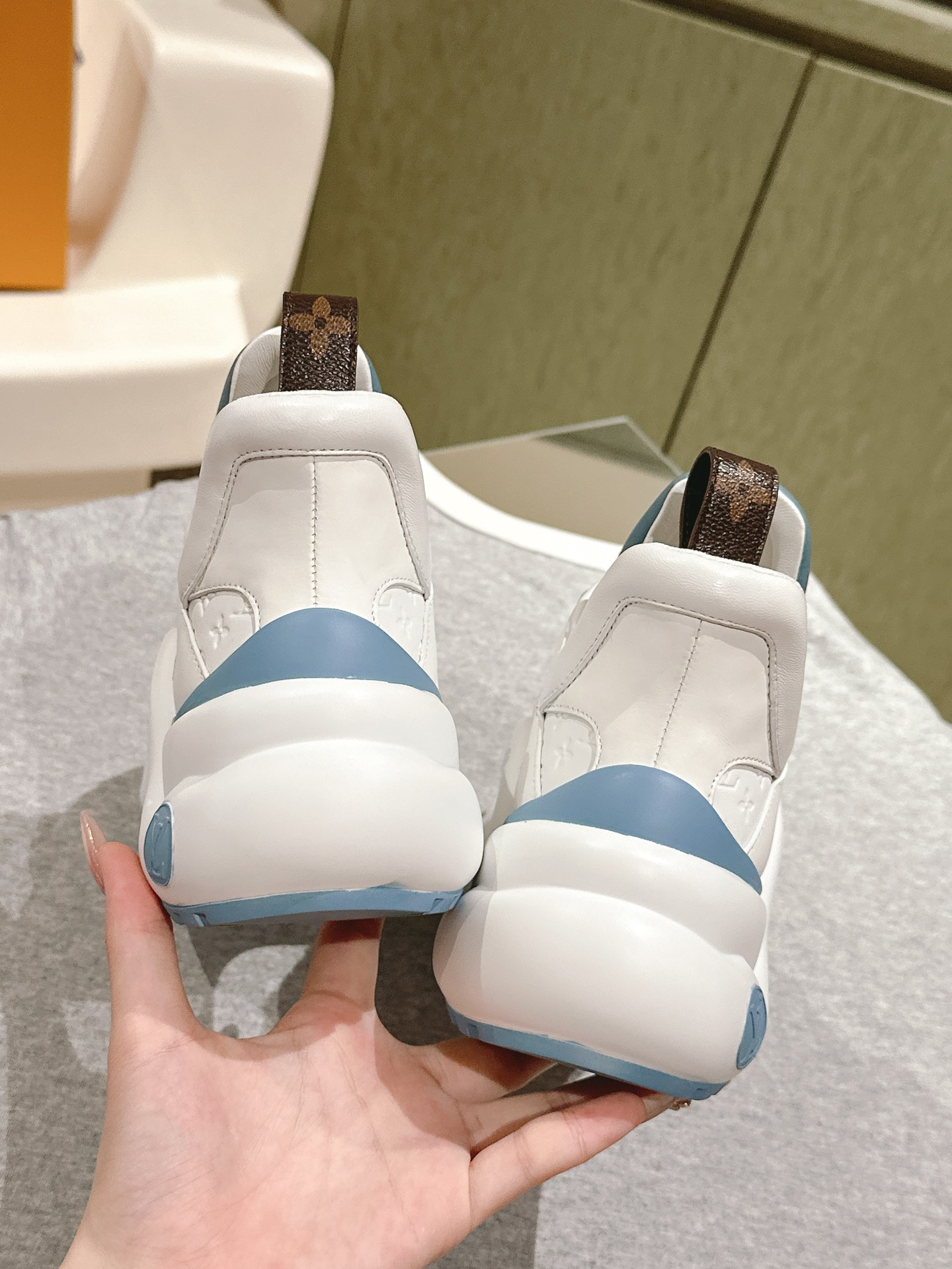 这款鞋子是AAAAA 1:1 质量 (非常棒). 使用了和原版一模一样的材料. 商标部分也保持了和路易威登/Louis Vuitton一样. 图片拍摄是实物鞋子拍摄, 您所收到的实物保证和我们图片一模一样.