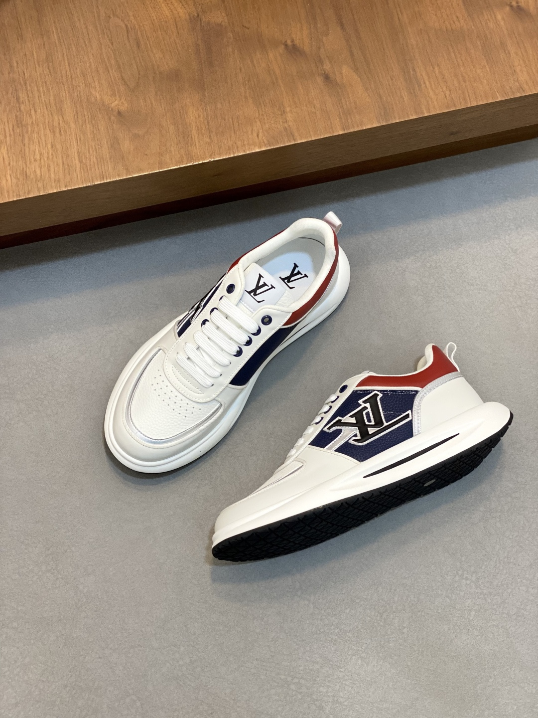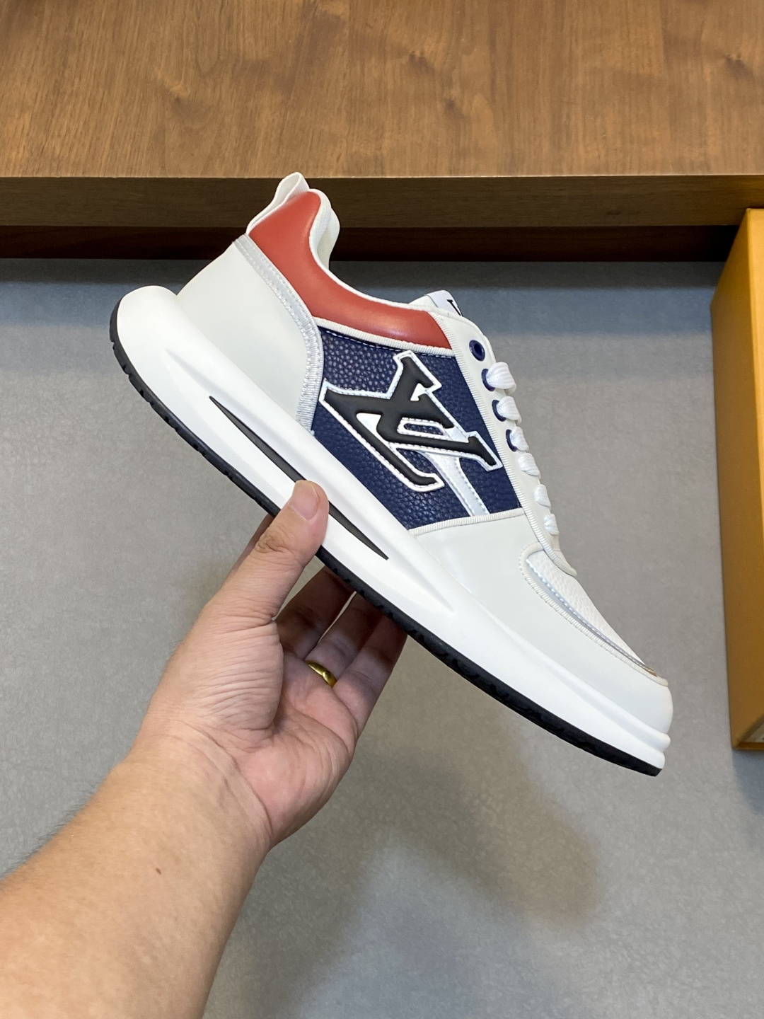 这款鞋子是AAAAA 1:1 质量 (非常棒). 使用了和原版一模一样的材料. 商标部分也保持了和路易威登/Louis Vuitton一样. 图片拍摄是实物鞋子拍摄, 您所收到的实物保证和我们图片一模一样.