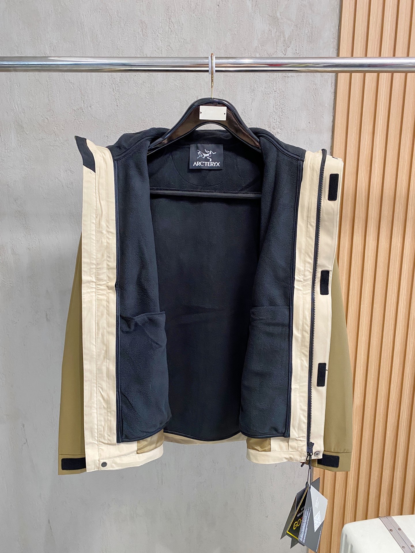这款衣服是AAAAA 1:1 质量 (非常棒). 使用了和原版一模一样的材料. 商标部分也保持了和ARC'TERYX一样. 图片拍摄是实物衣服拍摄, 您所收到的实物保证和我们图片一模一样.