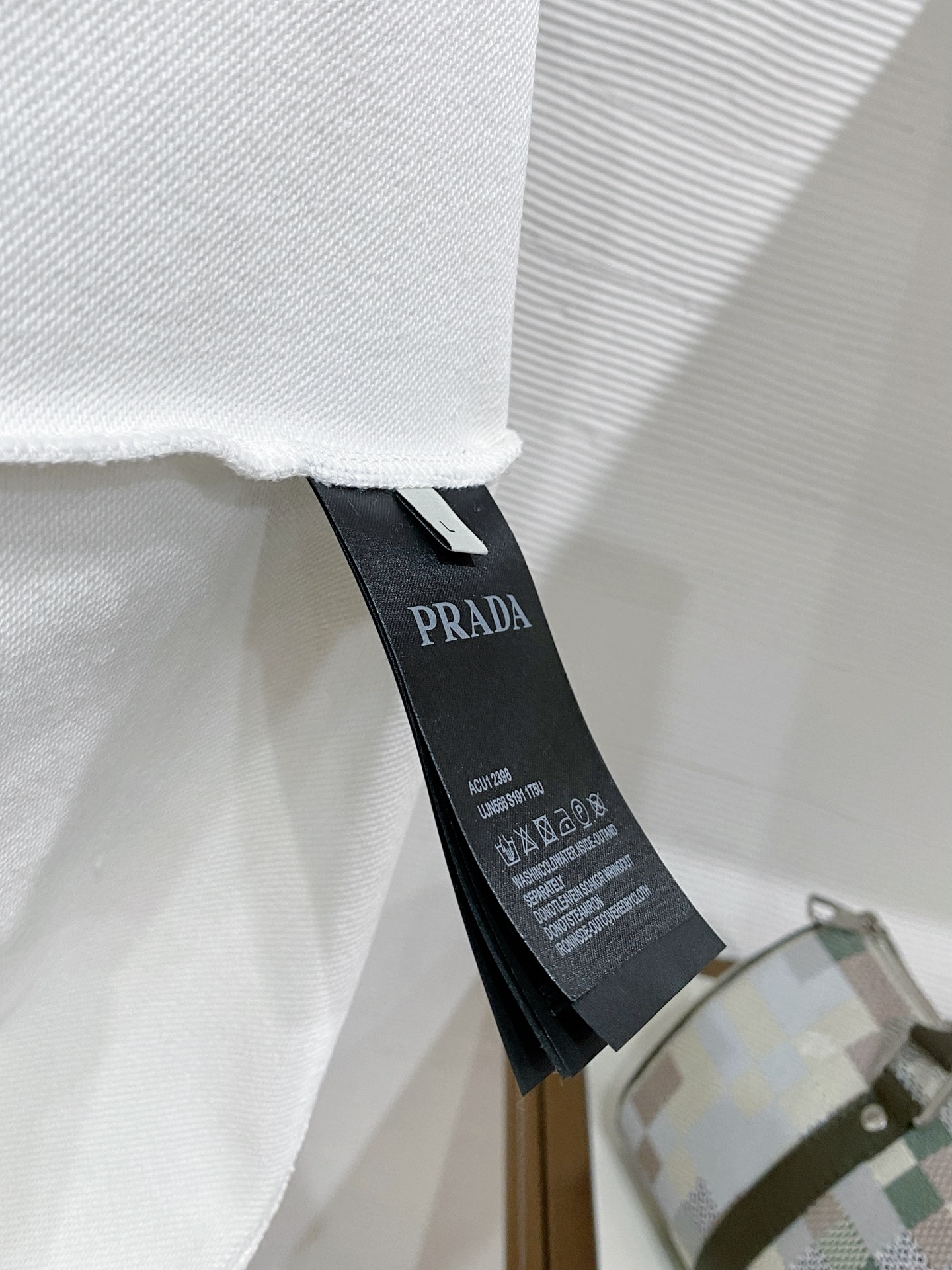 这款衣服是AAAAA 1:1 质量 (非常棒). 使用了和原版一模一样的材料. 商标部分也保持了和普拉达/Prada一样. 图片拍摄是实物衣服拍摄, 您所收到的实物保证和我们图片一模一样.