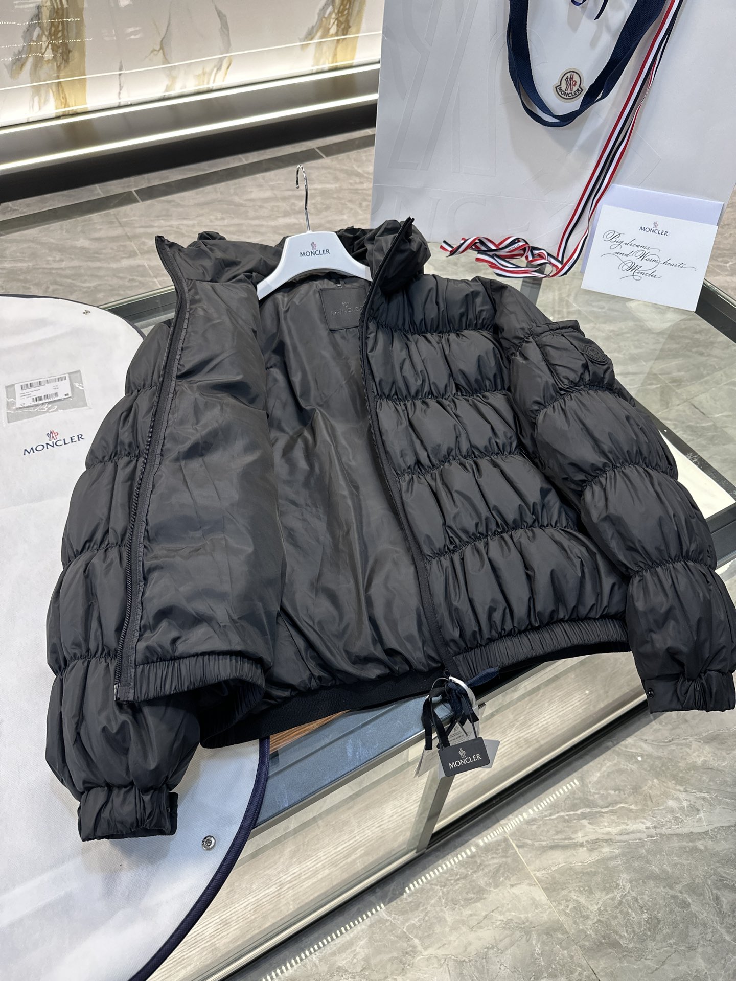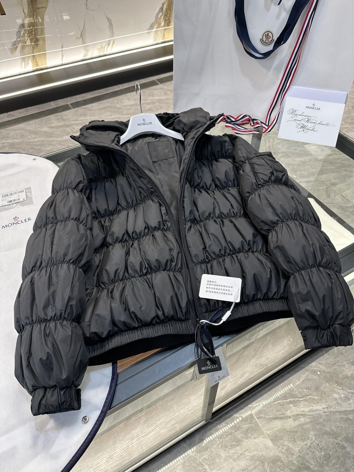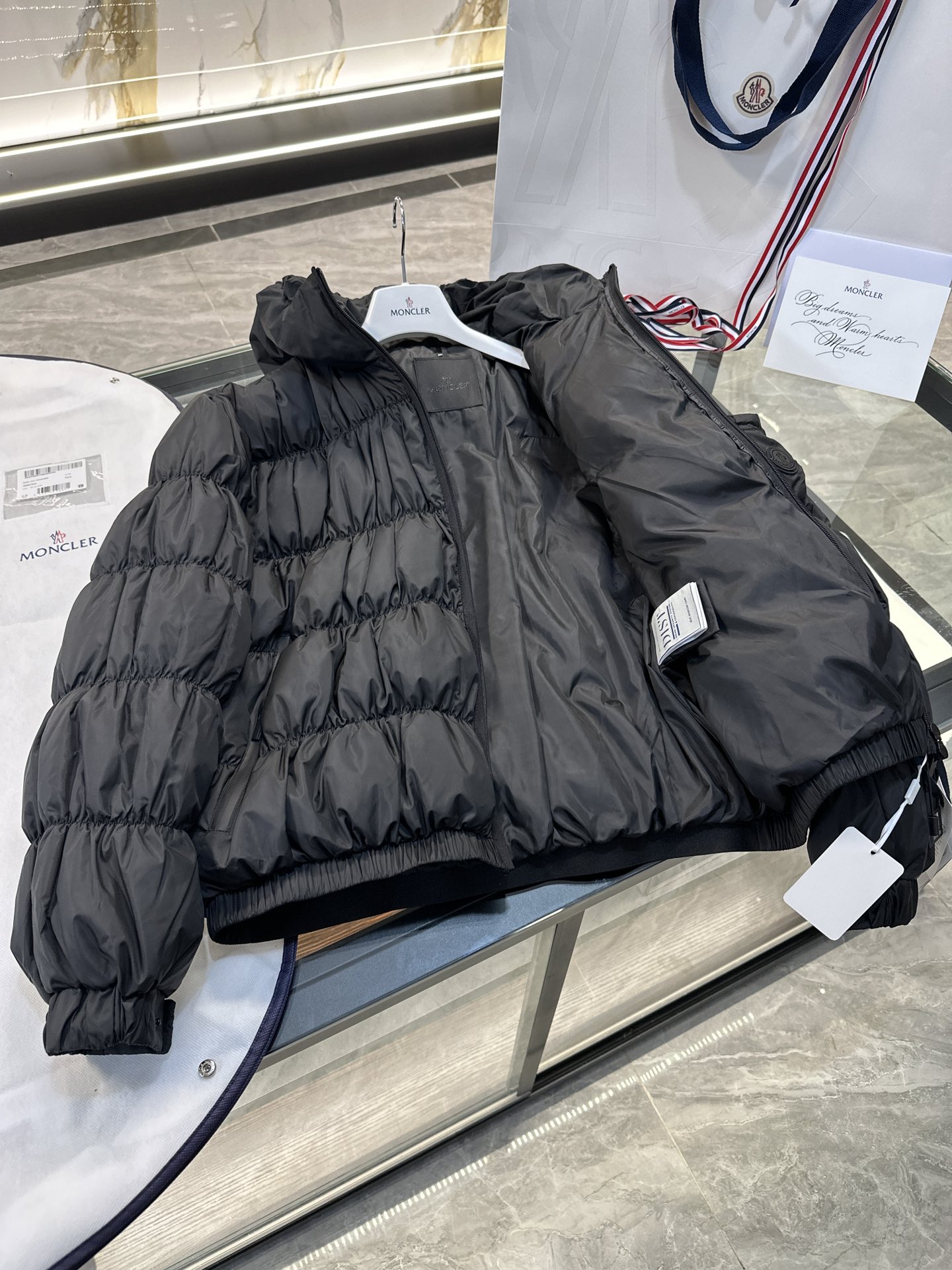 这款衣服是AAAAA 1:1 质量 (非常棒). 使用了和原版一模一样的材料. 商标部分也保持了和盟可睐/moncler一样. 图片拍摄是实物衣服拍摄, 您所收到的实物保证和我们图片一模一样.