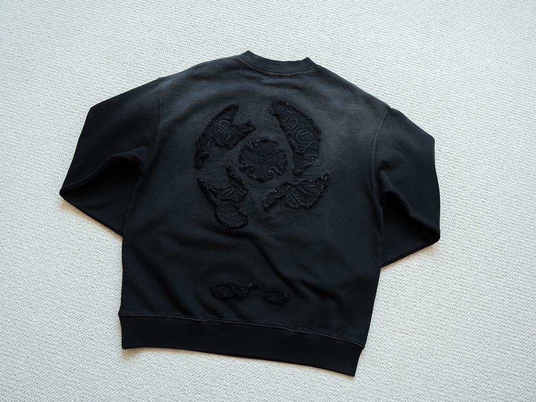 这款衣服是AAAAA 1:1 质量 (非常棒). 使用了和原版一模一样的材料. 商标部分也保持了和克罗心/Chrome Hearts一样. 图片拍摄是实物衣服拍摄, 您所收到的实物保证和我们图片一模一样.