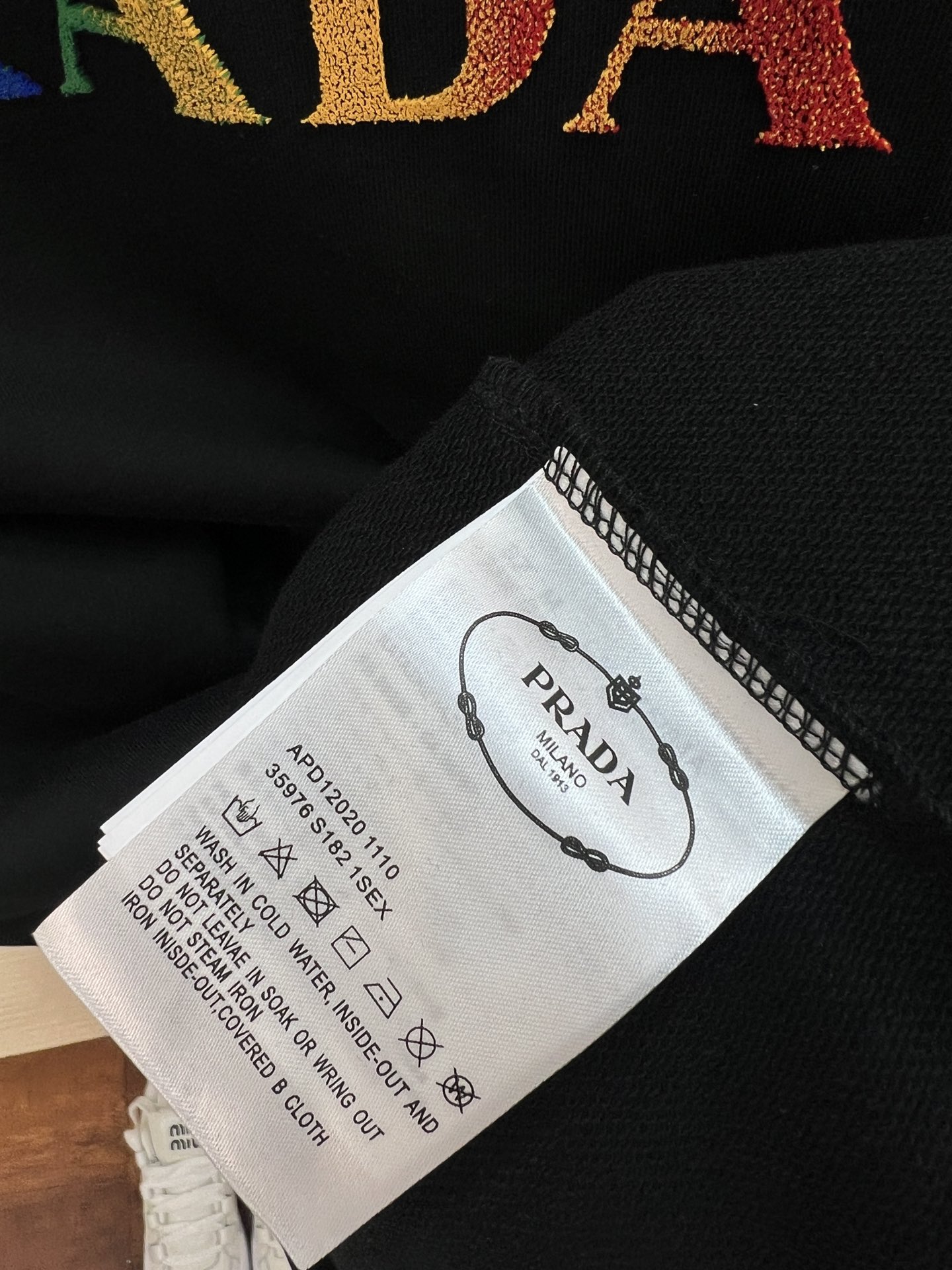 这款衣服是AAAAA 1:1 质量 (非常棒). 使用了和原版一模一样的材料. 商标部分也保持了和普拉达/Prada一样. 图片拍摄是实物衣服拍摄, 您所收到的实物保证和我们图片一模一样.