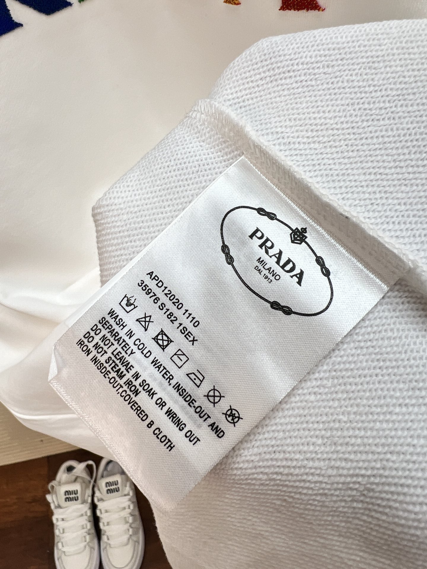 这款衣服是AAAAA 1:1 质量 (非常棒). 使用了和原版一模一样的材料. 商标部分也保持了和普拉达/Prada一样. 图片拍摄是实物衣服拍摄, 您所收到的实物保证和我们图片一模一样.