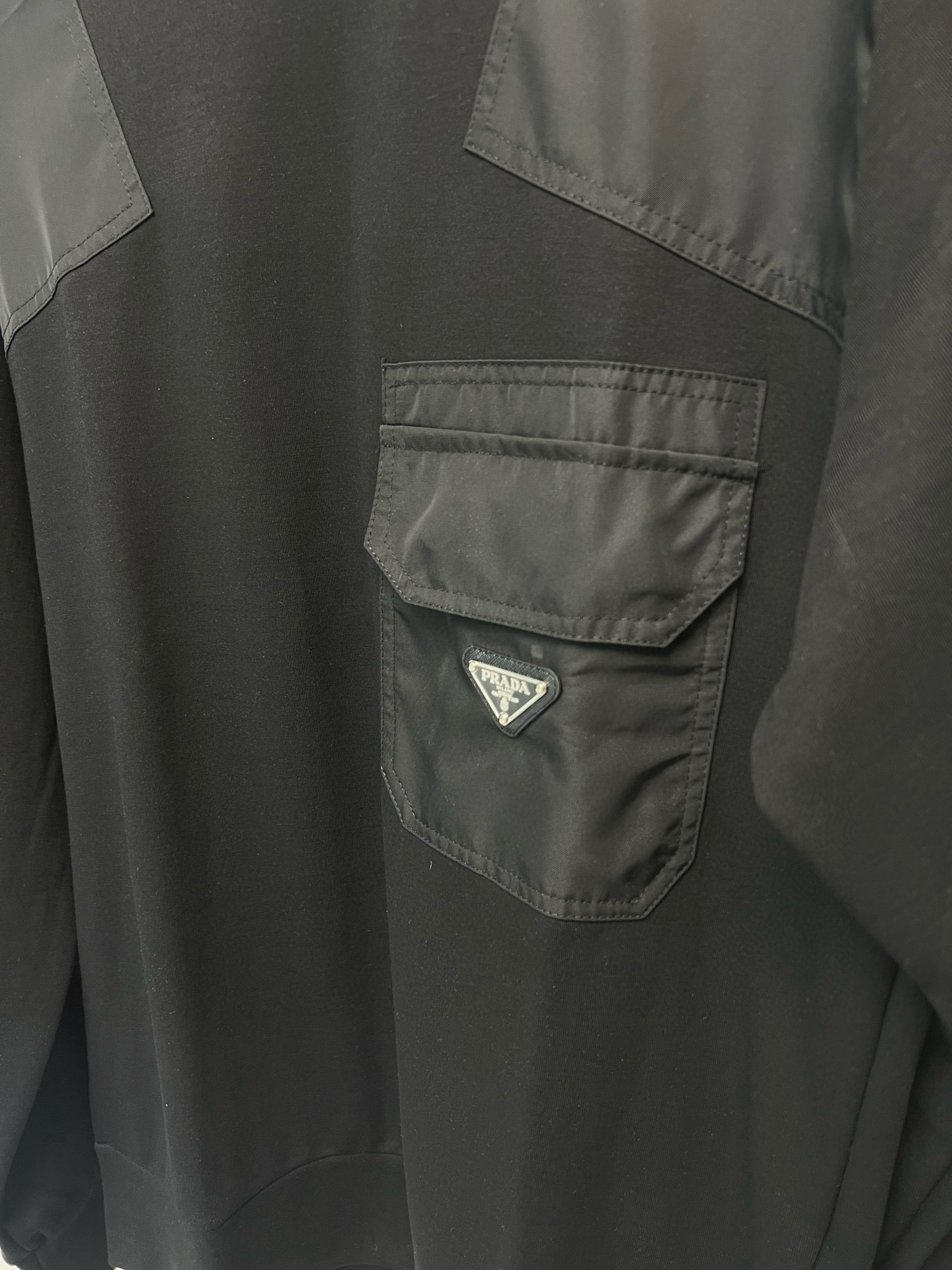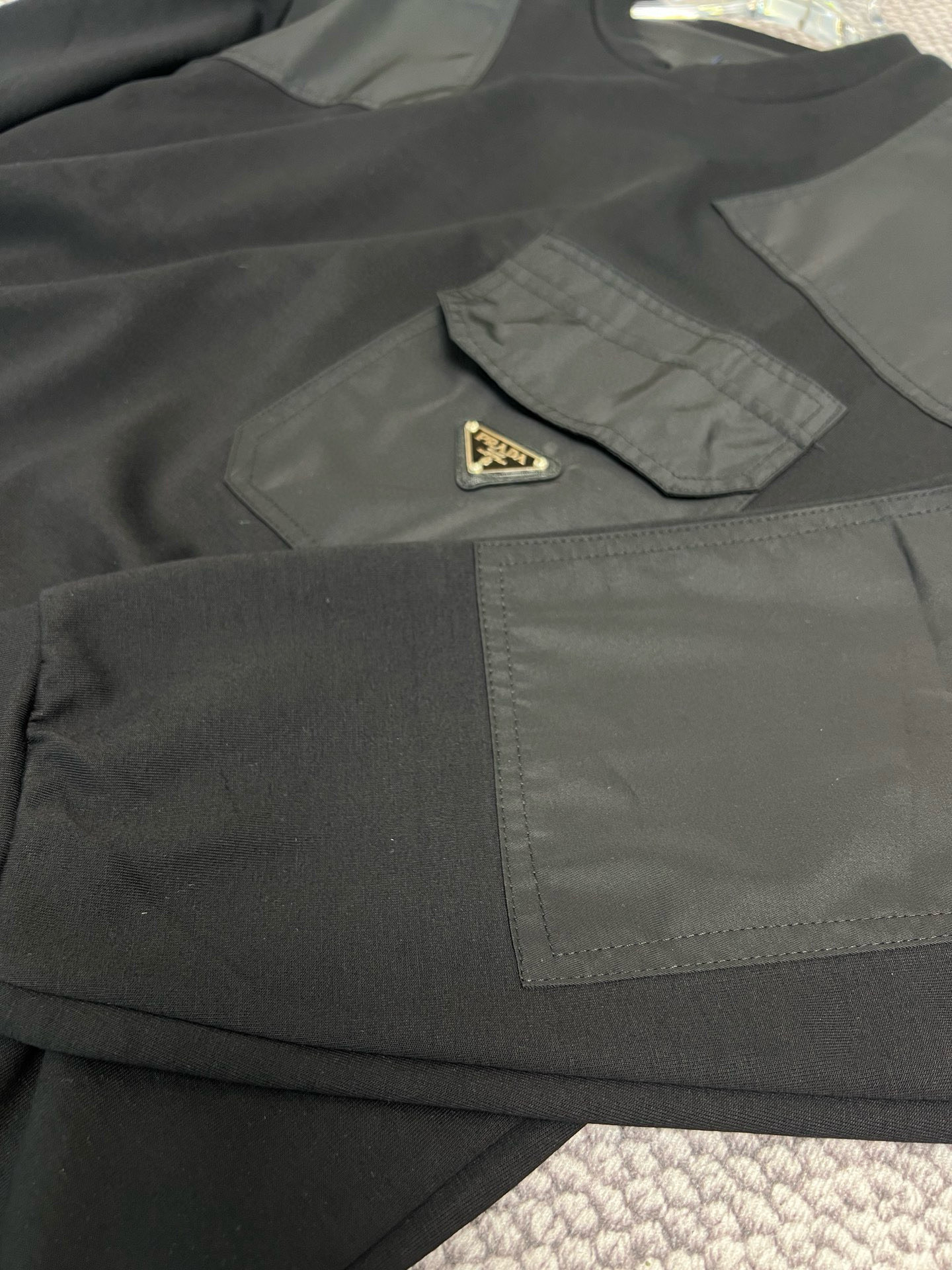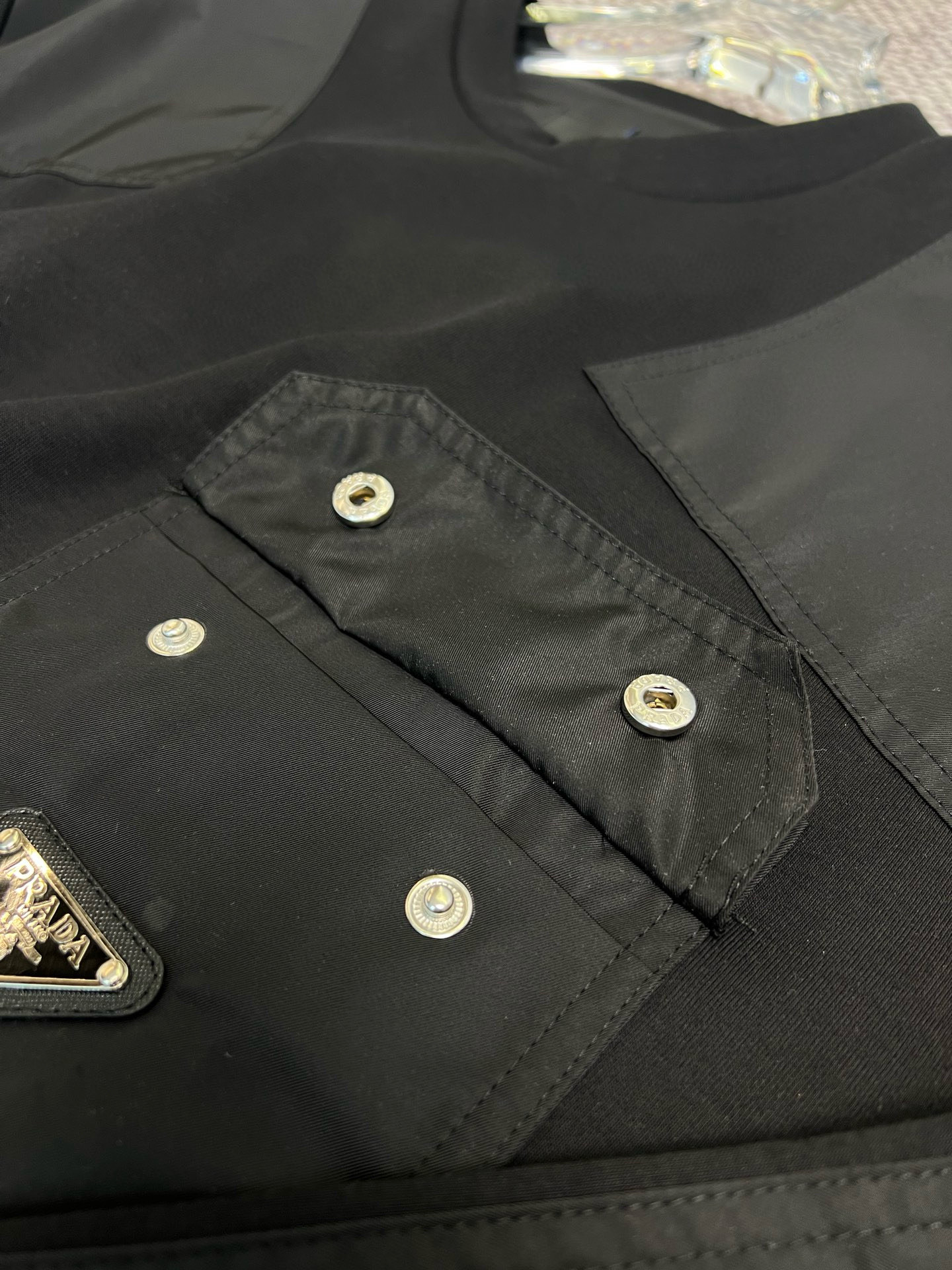 这款衣服是AAAAA 1:1 质量 (非常棒). 使用了和原版一模一样的材料. 商标部分也保持了和普拉达/Prada一样. 图片拍摄是实物衣服拍摄, 您所收到的实物保证和我们图片一模一样.
