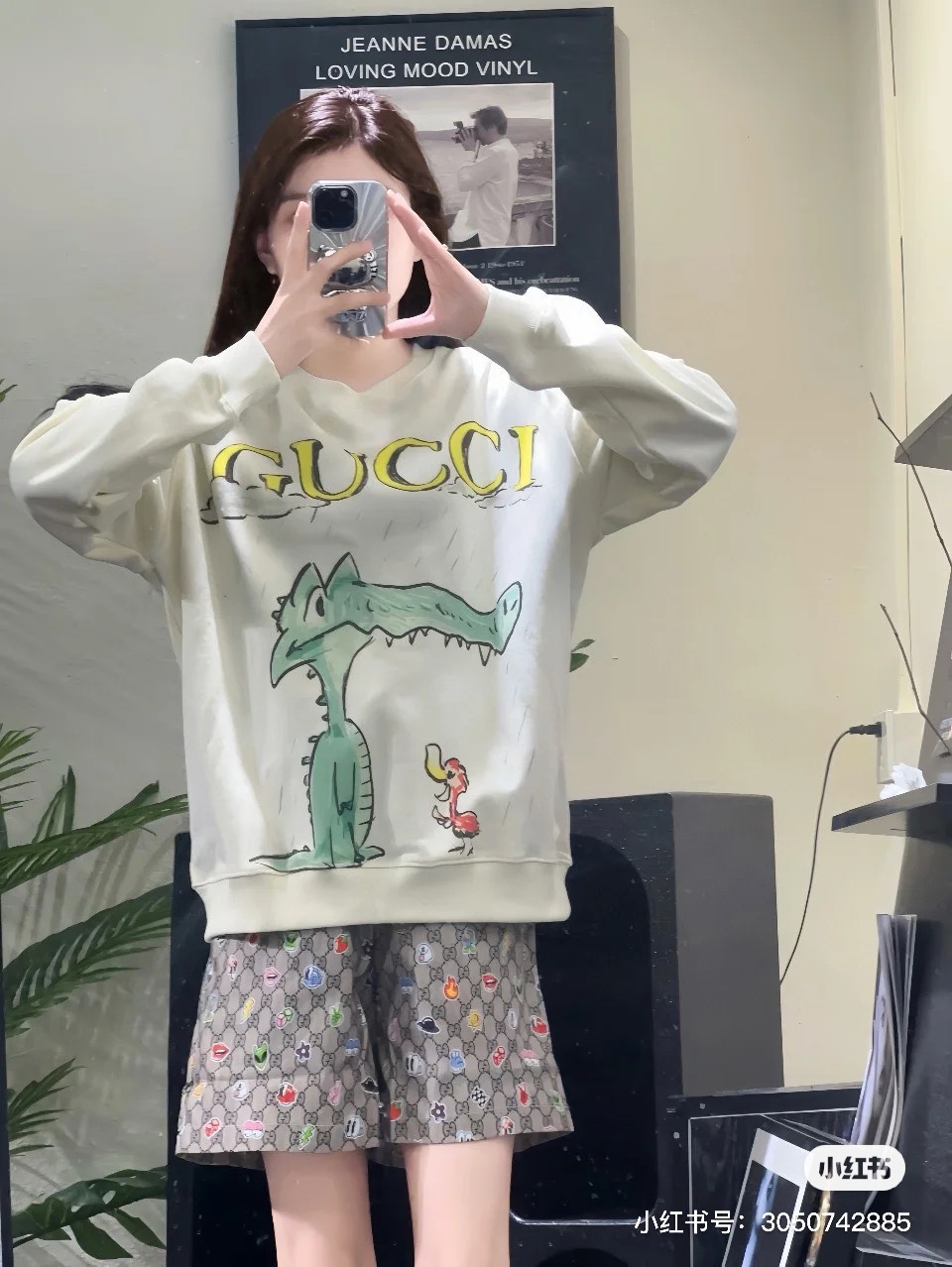 这款衣服是AAAAA 1:1 质量 (非常棒). 使用了和原版一模一样的材料. 商标部分也保持了和古奇/Gucci一样. 图片拍摄是实物衣服拍摄, 您所收到的实物保证和我们图片一模一样.