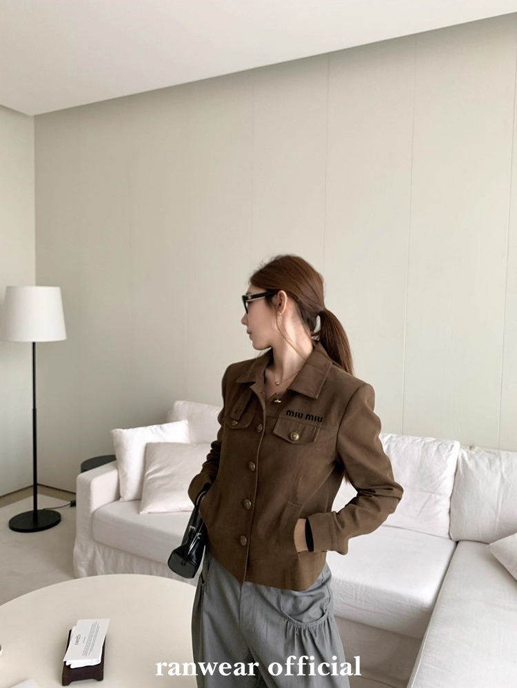 这款衣服是AAAAA 1:1 质量 (非常棒). 使用了和原版一模一样的材料. 商标部分也保持了和缪缪/Miu Miu一样. 图片拍摄是实物衣服拍摄, 您所收到的实物保证和我们图片一模一样.