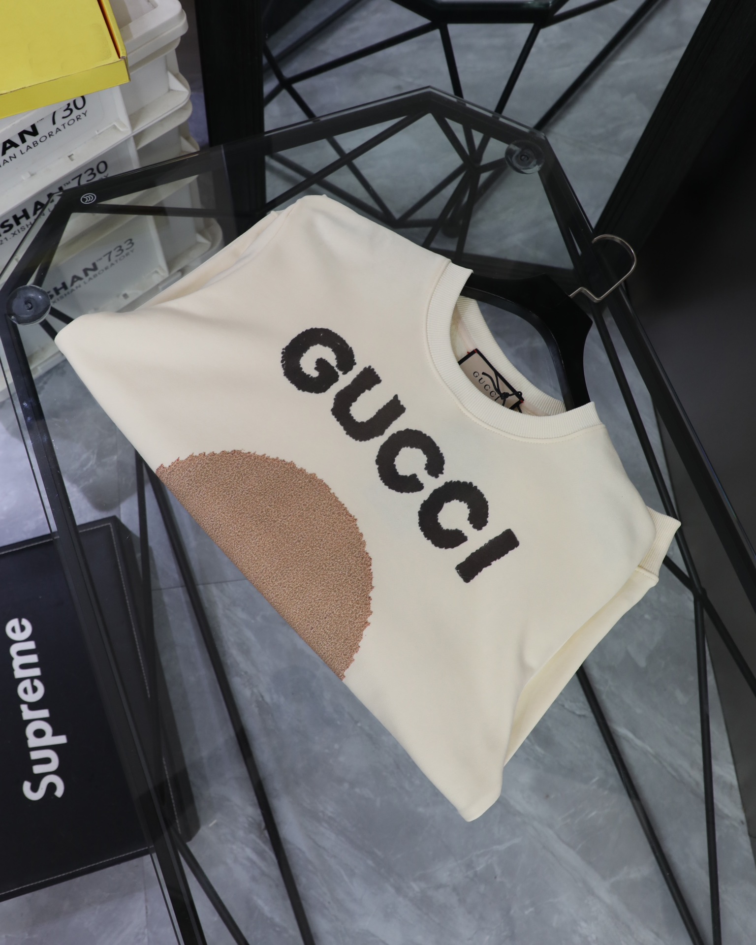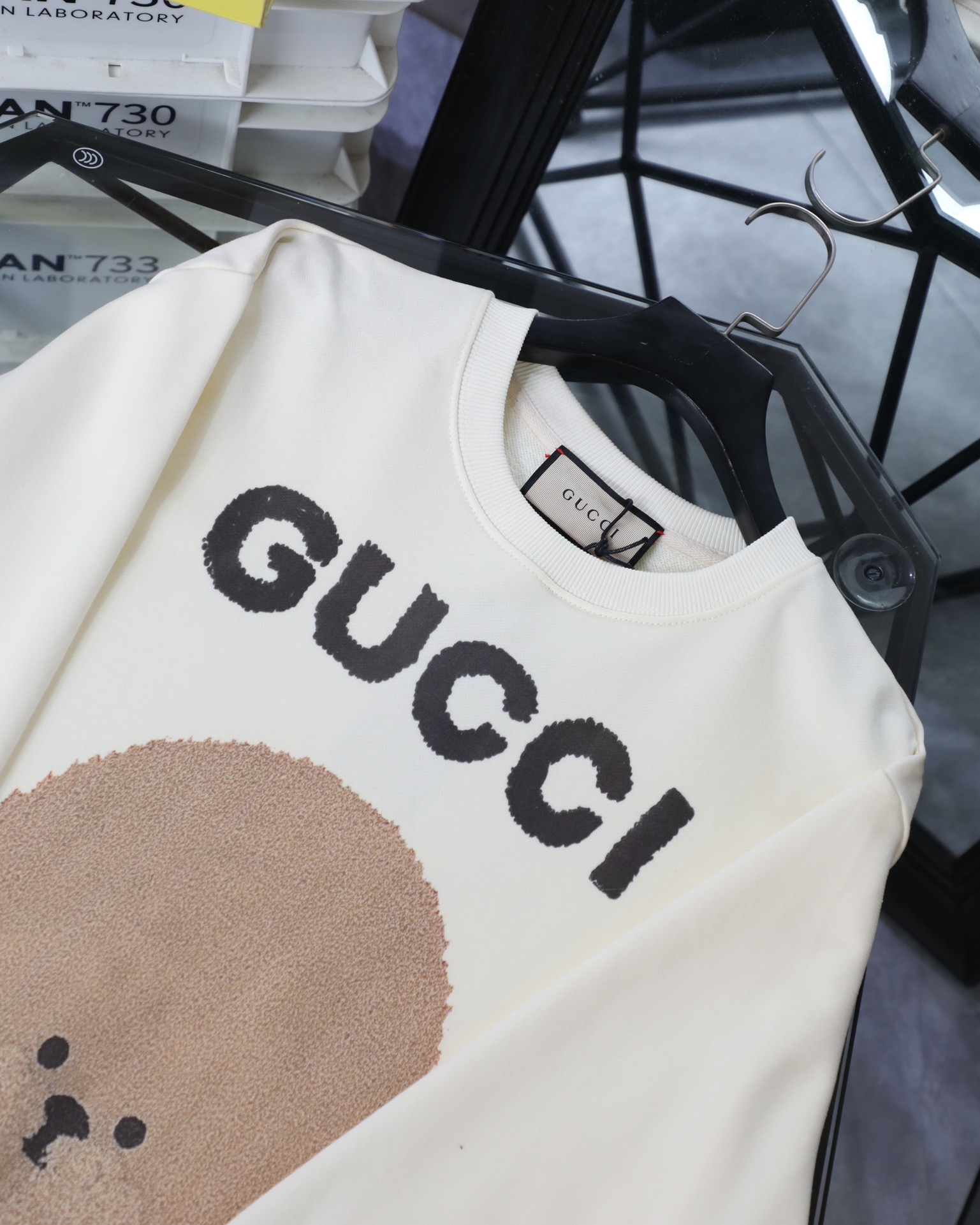 这款衣服是AAAAA 1:1 质量 (非常棒). 使用了和原版一模一样的材料. 商标部分也保持了和古奇/Gucci一样. 图片拍摄是实物衣服拍摄, 您所收到的实物保证和我们图片一模一样.