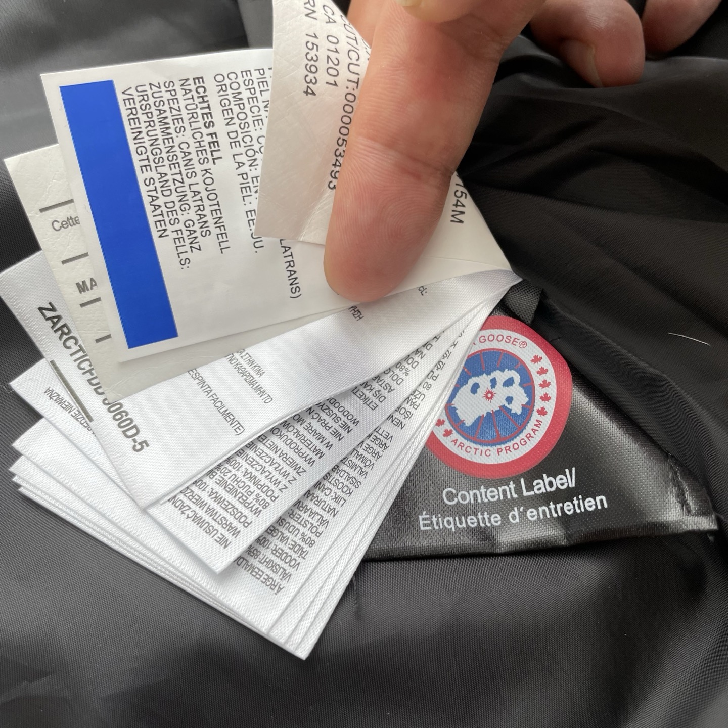 这款衣服是AAAAA 1:1 质量 (非常棒). 使用了和原版一模一样的材料. 商标部分也保持了和Canada Goose一样. 图片拍摄是实物衣服拍摄, 您所收到的实物保证和我们图片一模一样.