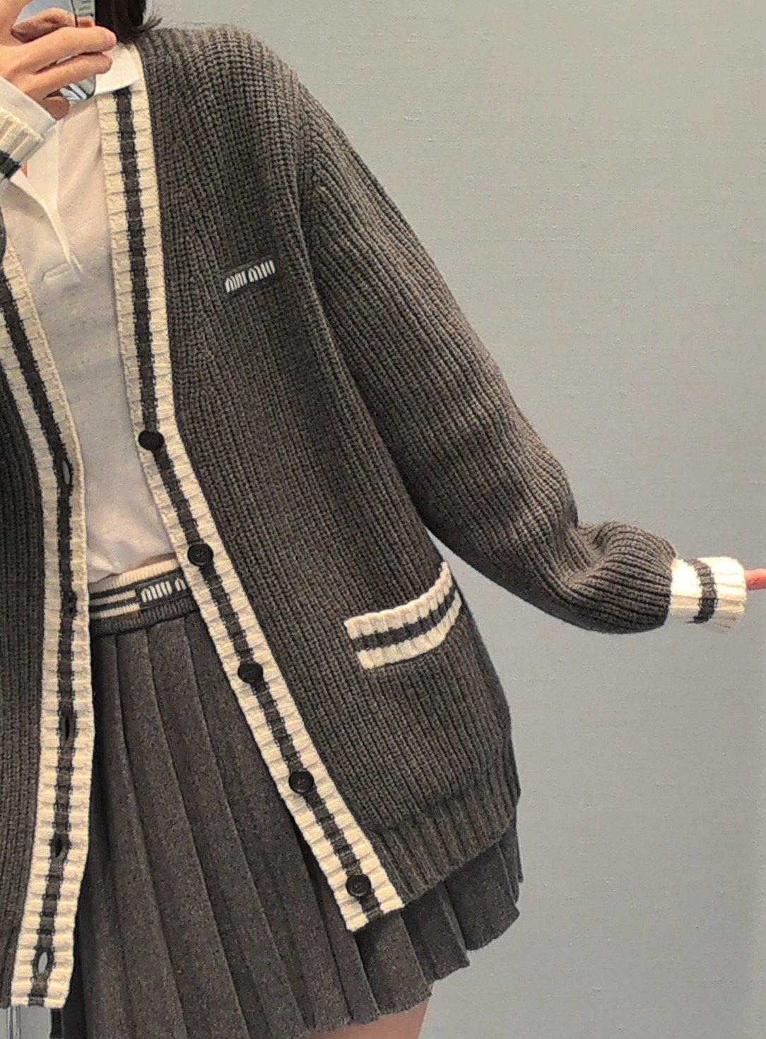 这款衣服是AAAAA 1:1 质量 (非常棒). 使用了和原版一模一样的材料. 商标部分也保持了和缪缪/Miu Miu一样. 图片拍摄是实物衣服拍摄, 您所收到的实物保证和我们图片一模一样.