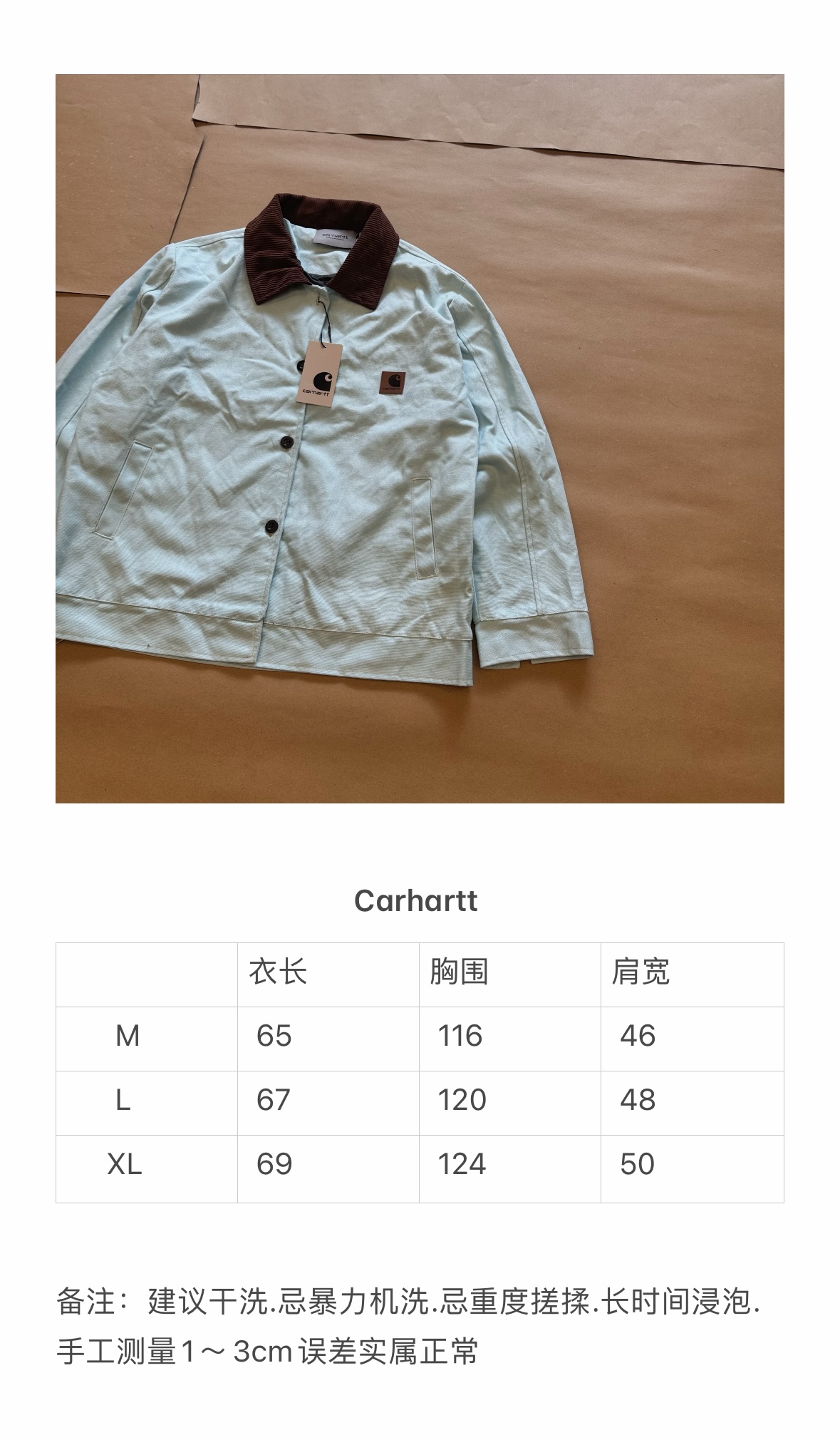这款衣服是AAAAA 1:1 质量 (非常棒). 使用了和原版一模一样的材料. 商标部分也保持了和Carhartt一样. 图片拍摄是实物衣服拍摄, 您所收到的实物保证和我们图片一模一样.