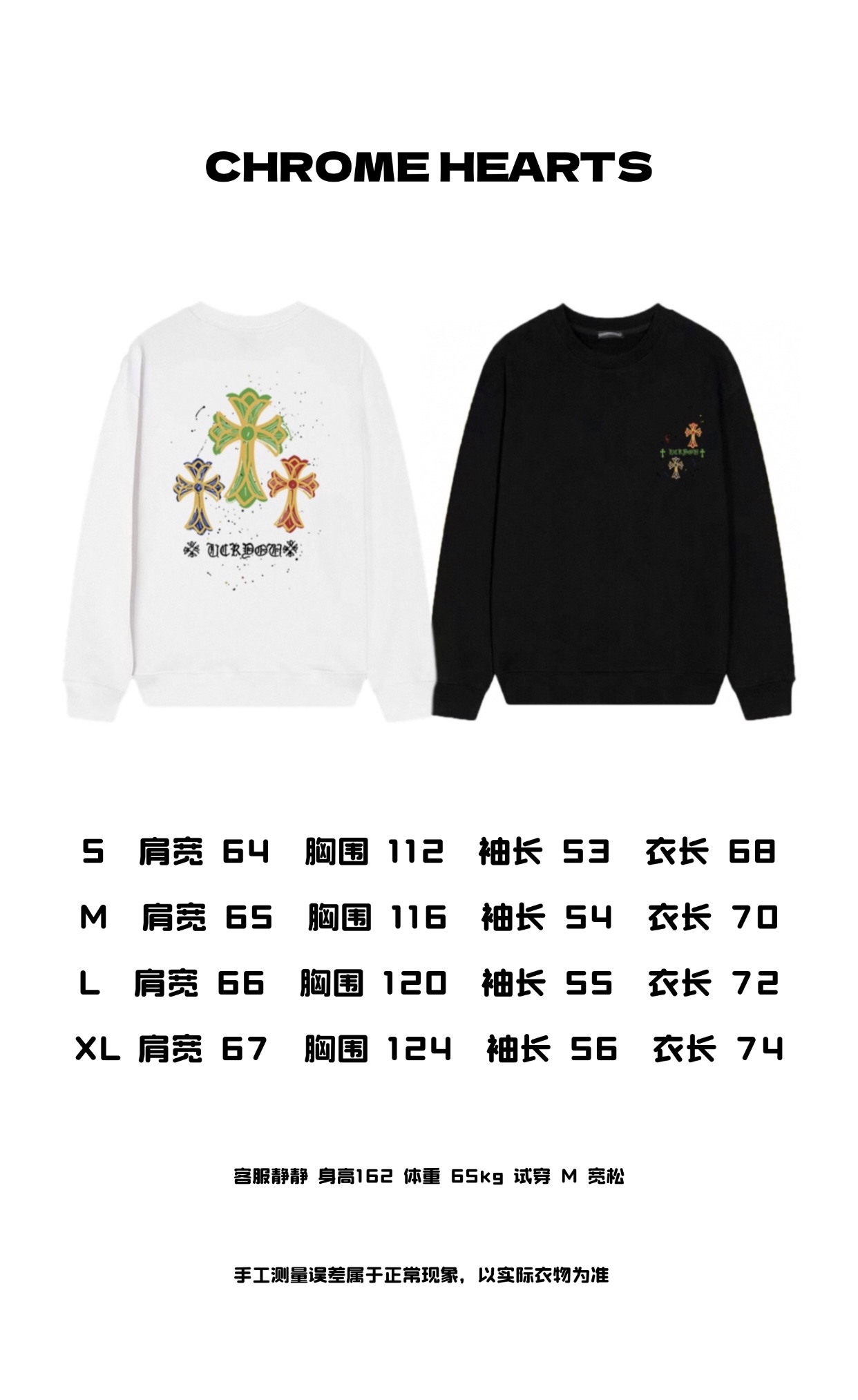 这款衣服是AAAAA 1:1 质量 (非常棒). 使用了和原版一模一样的材料. 商标部分也保持了和克罗心/Chrome Hearts一样. 图片拍摄是实物衣服拍摄, 您所收到的实物保证和我们图片一模一样.