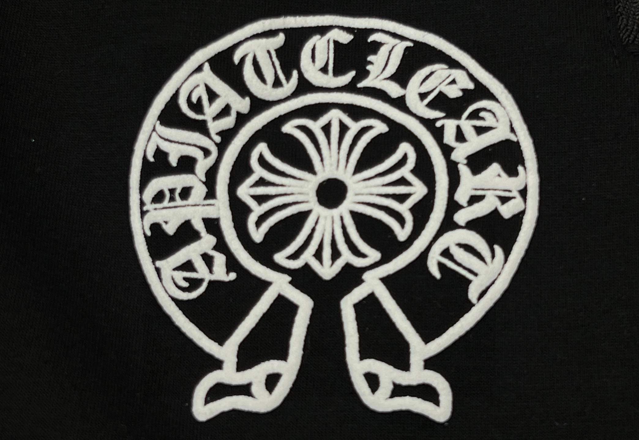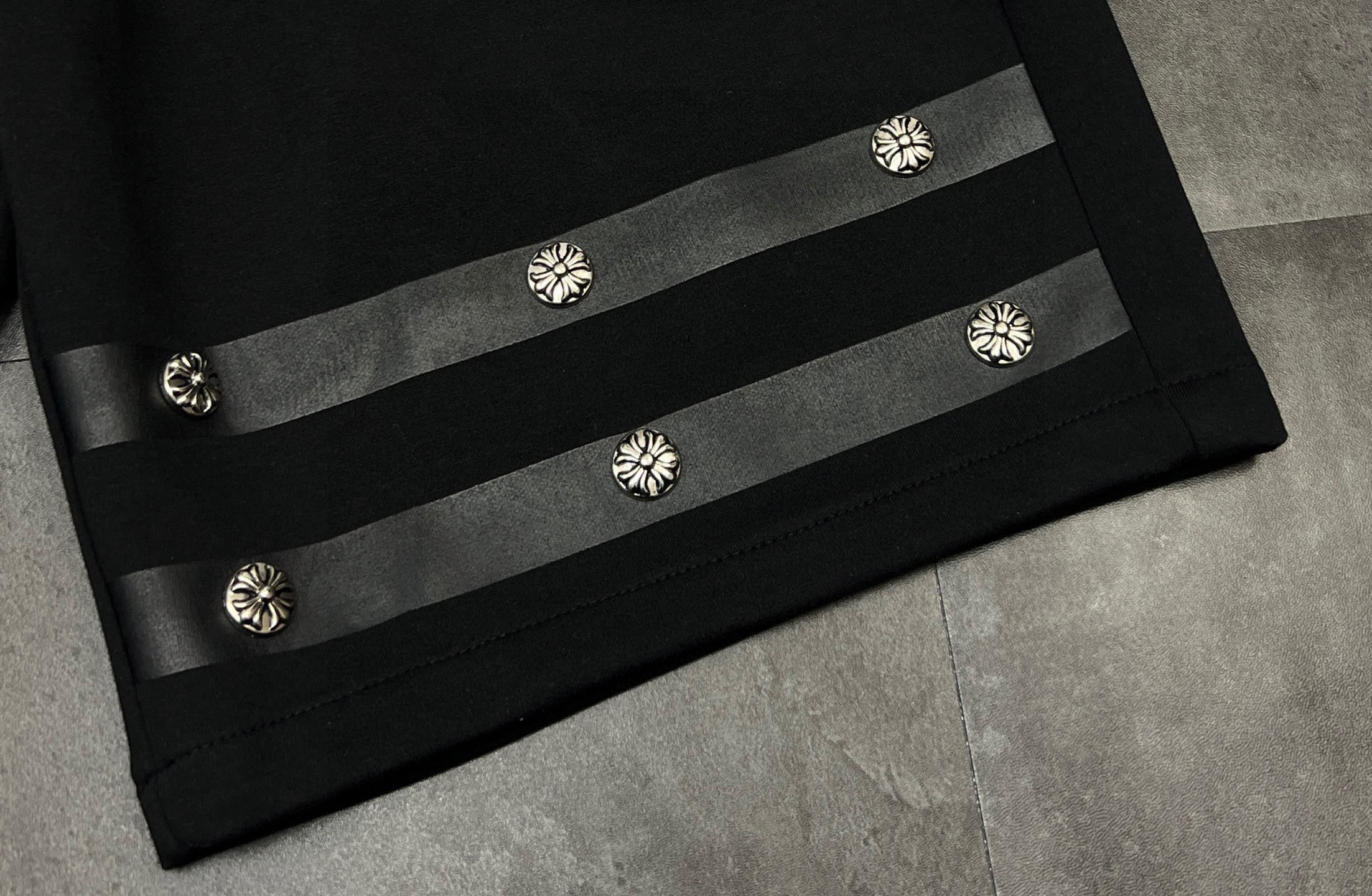 这款衣服是AAAAA 1:1 质量 (非常棒). 使用了和原版一模一样的材料. 商标部分也保持了和克罗心/Chrome Hearts一样. 图片拍摄是实物衣服拍摄, 您所收到的实物保证和我们图片一模一样.