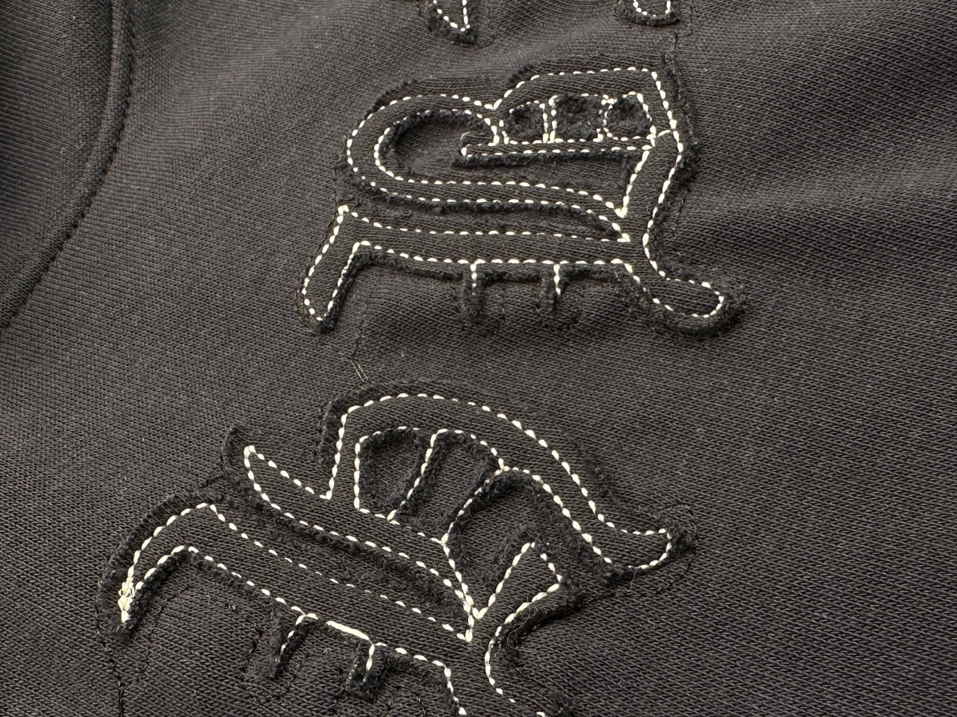 这款衣服是AAAAA 1:1 质量 (非常棒). 使用了和原版一模一样的材料. 商标部分也保持了和克罗心/Chrome Hearts一样. 图片拍摄是实物衣服拍摄, 您所收到的实物保证和我们图片一模一样.