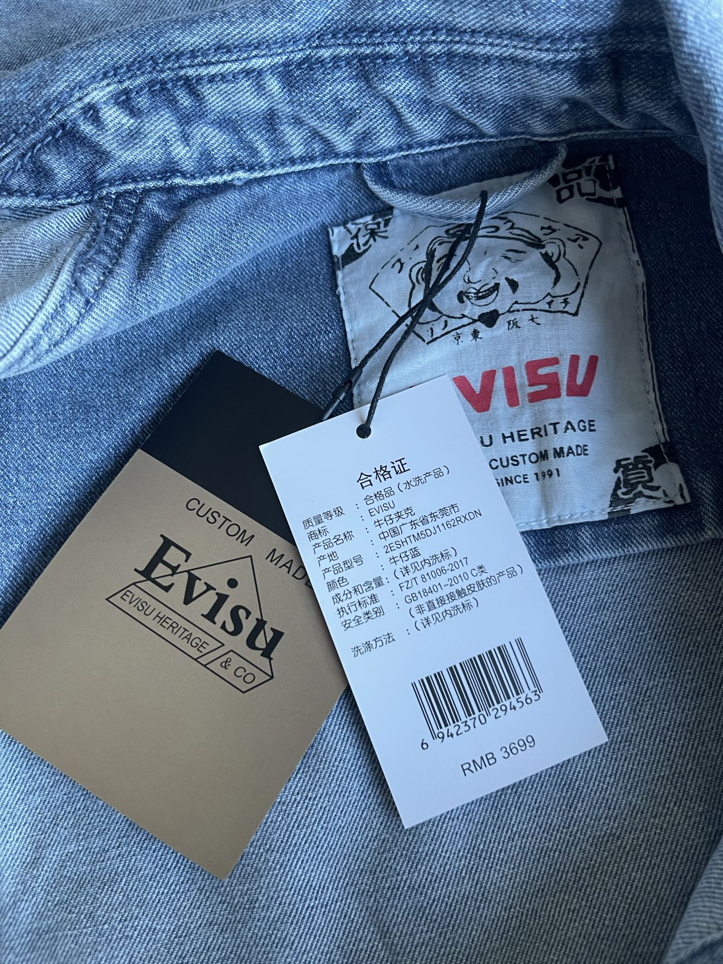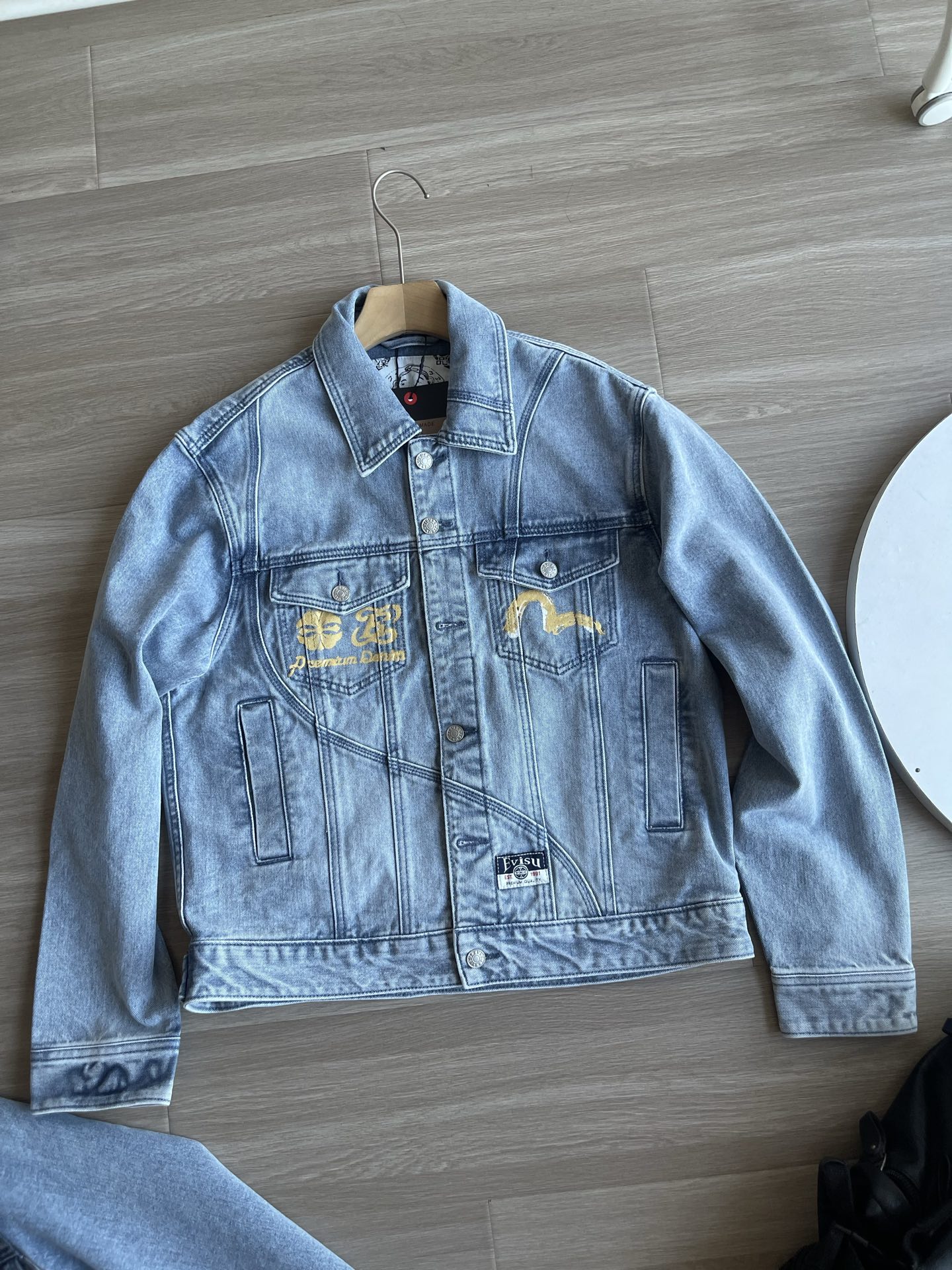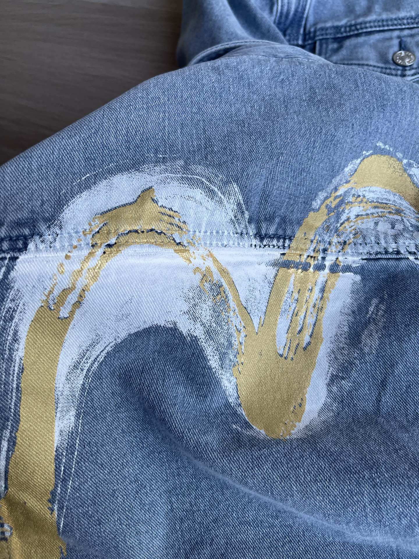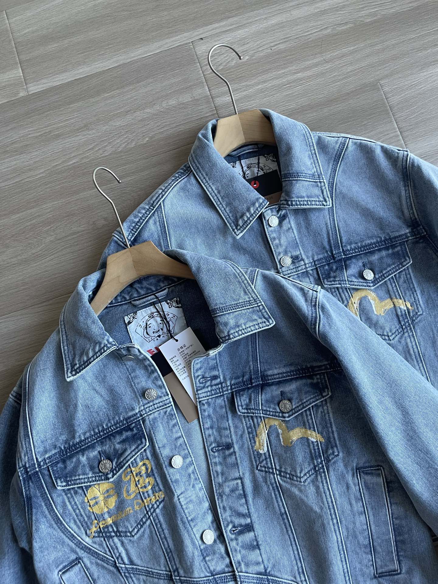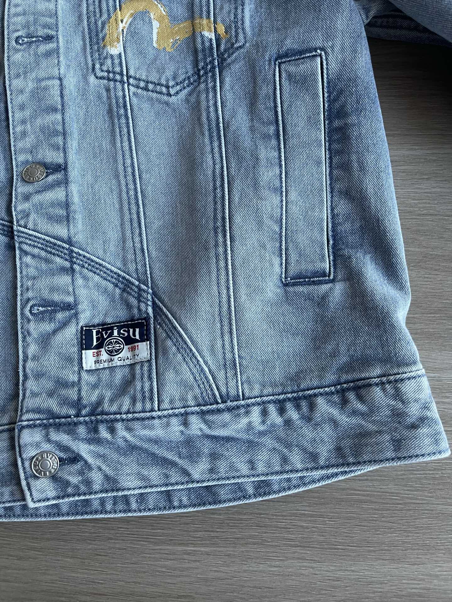 这款衣服是AAAAA 1:1 质量 (非常棒). 使用了和原版一模一样的材料. 商标部分也保持了和EVISU一样. 图片拍摄是实物衣服拍摄, 您所收到的实物保证和我们图片一模一样.