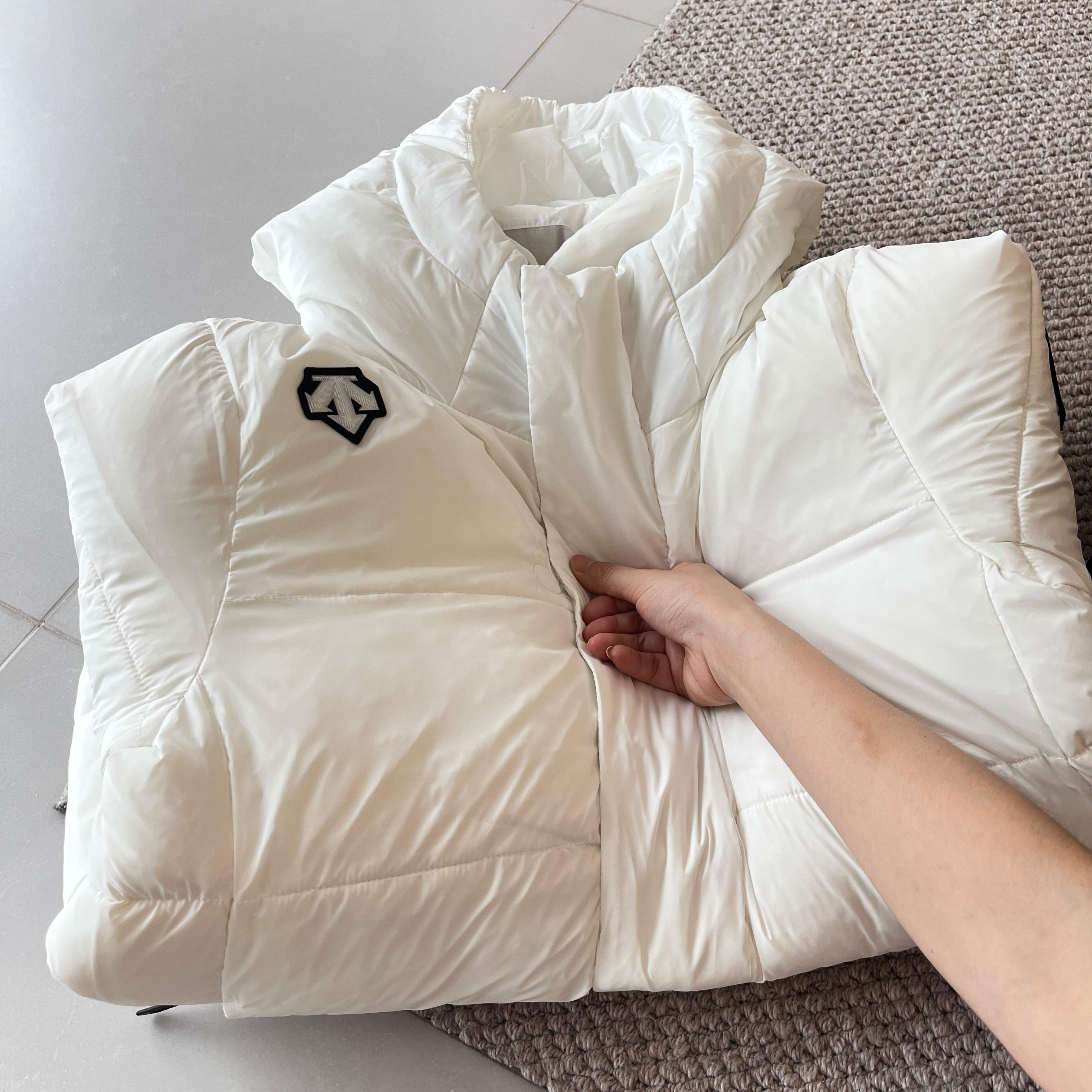 这款衣服是AAAAA 1:1 质量 (非常棒). 使用了和原版一模一样的材料. 商标部分也保持了和Descente一样. 图片拍摄是实物衣服拍摄, 您所收到的实物保证和我们图片一模一样.
