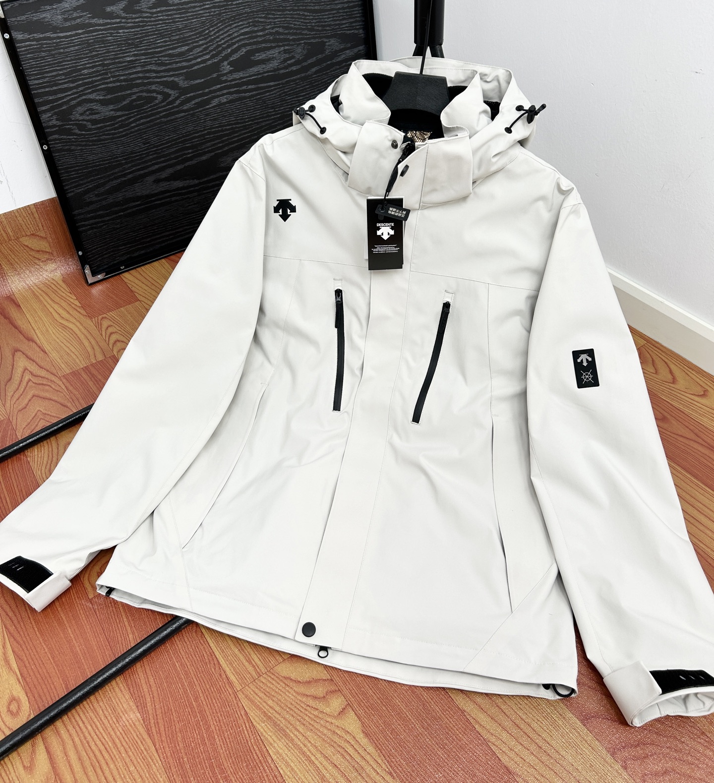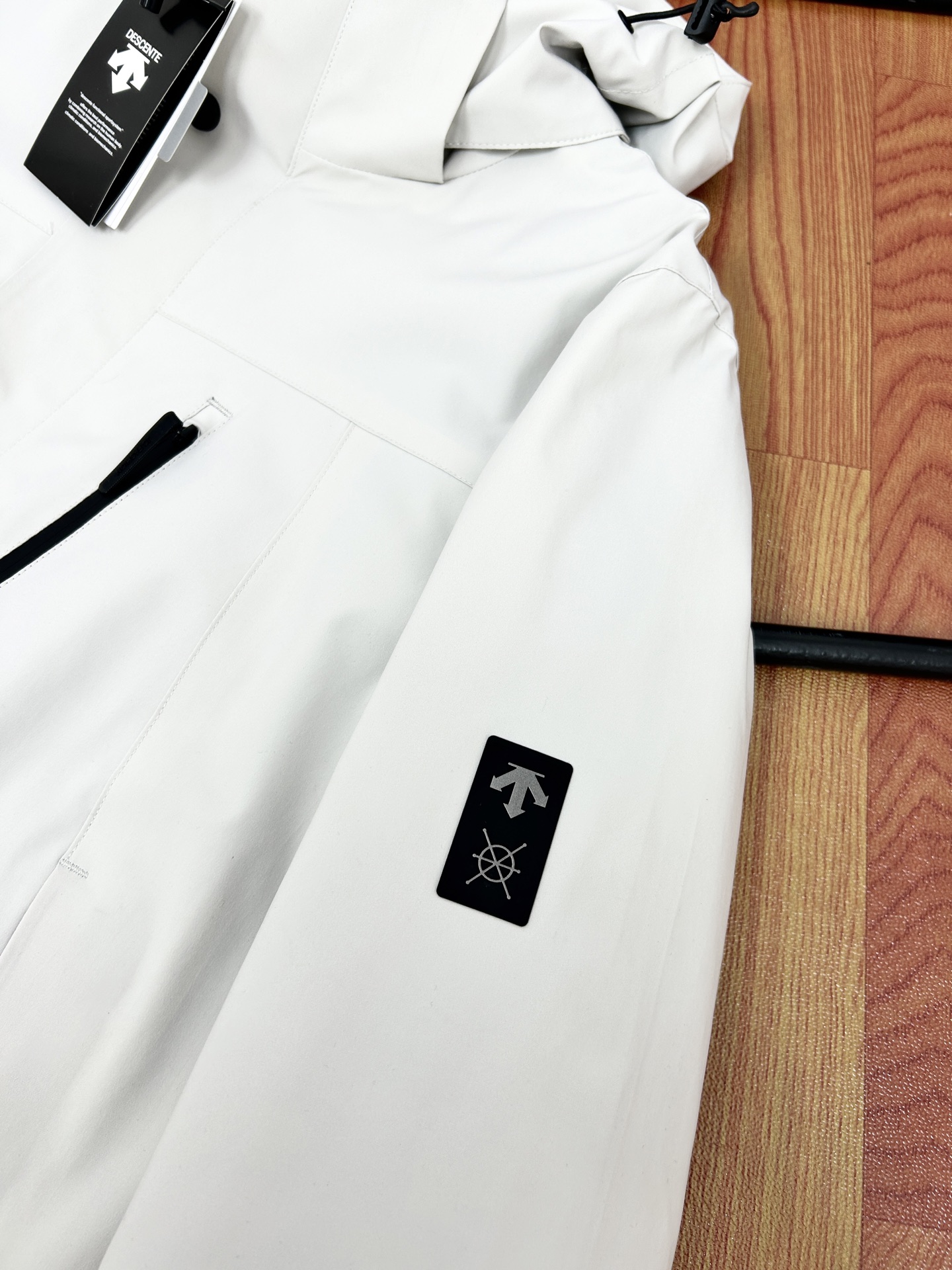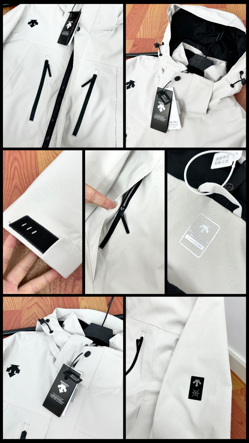 这款衣服是AAAAA 1:1 质量 (非常棒). 使用了和原版一模一样的材料. 商标部分也保持了和Descente一样. 图片拍摄是实物衣服拍摄, 您所收到的实物保证和我们图片一模一样.