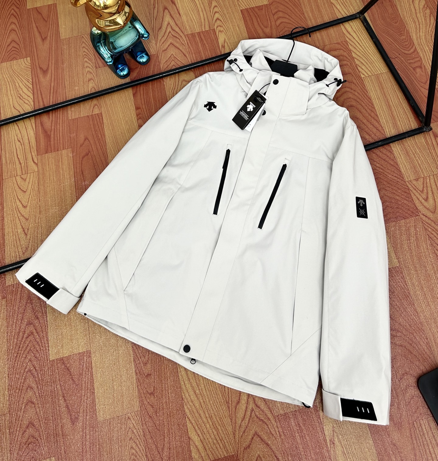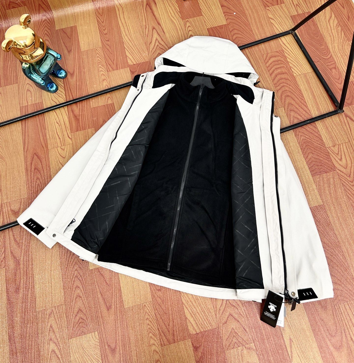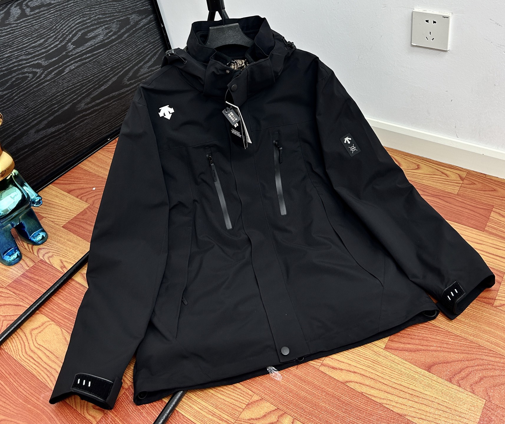 这款衣服是AAAAA 1:1 质量 (非常棒). 使用了和原版一模一样的材料. 商标部分也保持了和Descente一样. 图片拍摄是实物衣服拍摄, 您所收到的实物保证和我们图片一模一样.