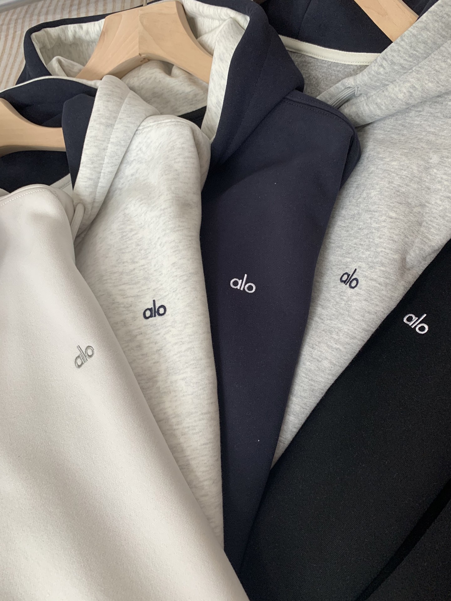 这款衣服是AAAAA 1:1 质量 (非常棒). 使用了和原版一模一样的材料. 商标部分也保持了和Alo Yoga一样. 图片拍摄是实物衣服拍摄, 您所收到的实物保证和我们图片一模一样.