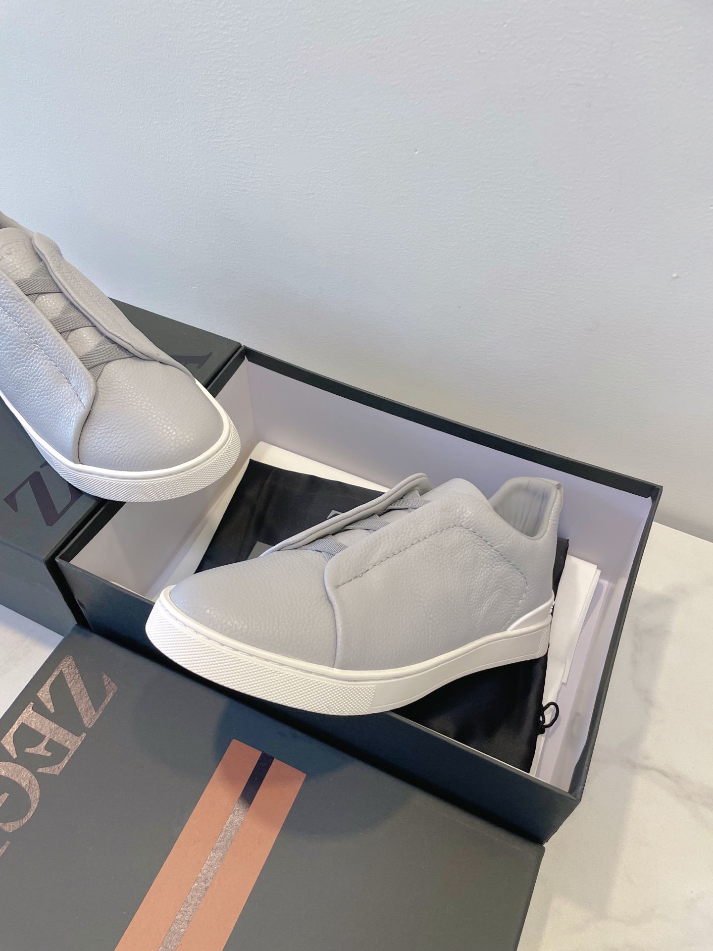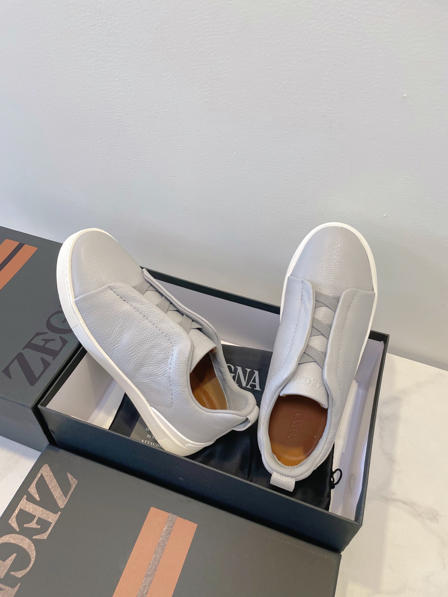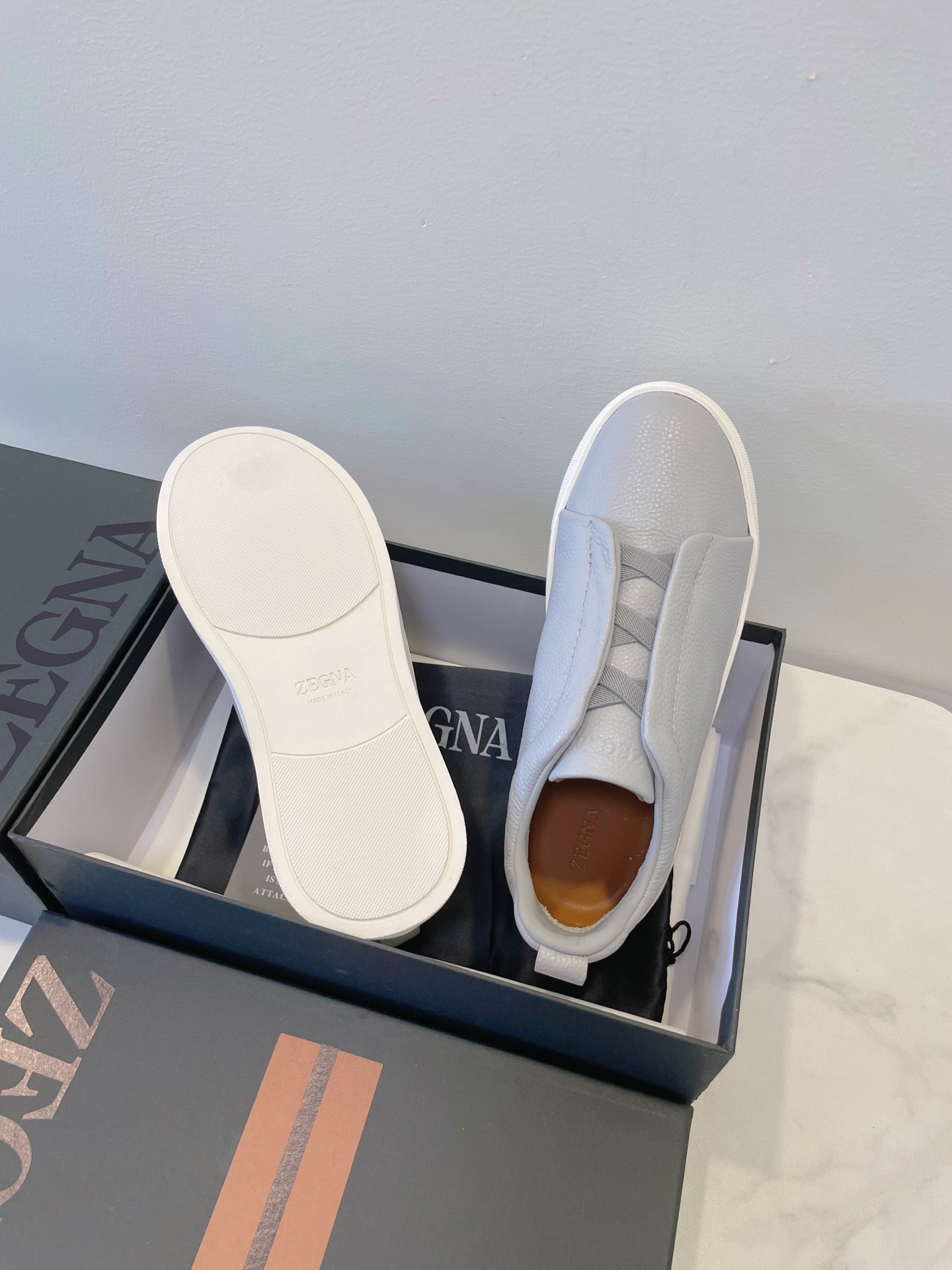 这款鞋子是AAAAA 1:1 质量 (非常棒). 使用了和原版一模一样的材料. 商标部分也保持了和杰尼亚/Zegna一样. 图片拍摄是实物鞋子拍摄, 您所收到的实物保证和我们图片一模一样.
