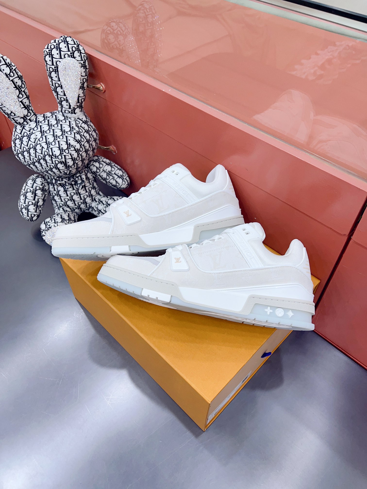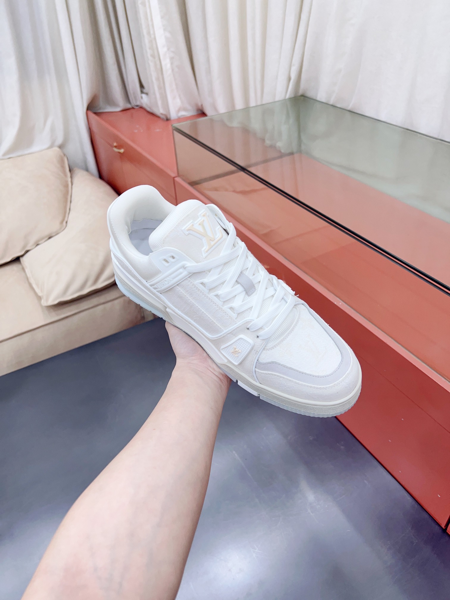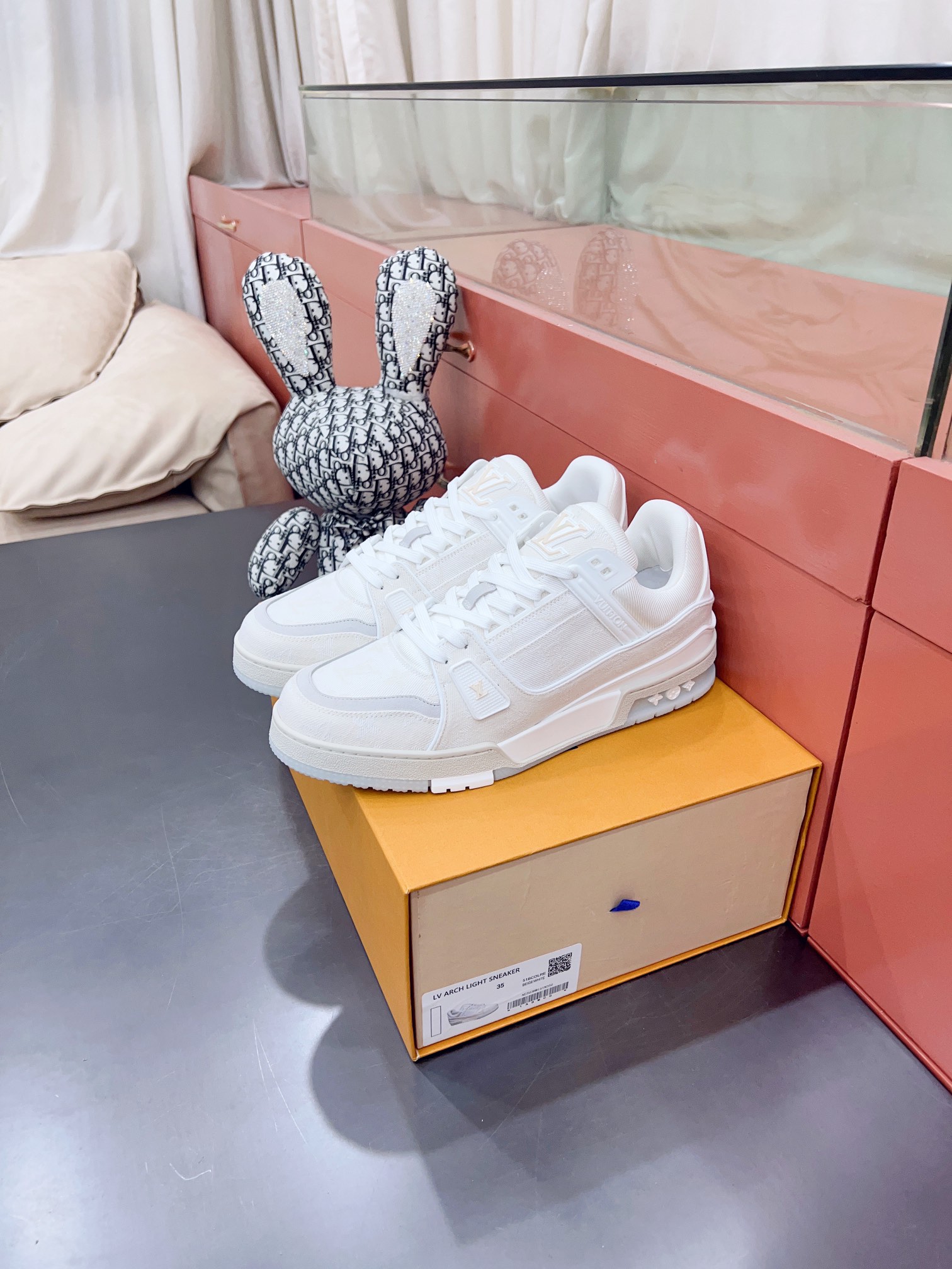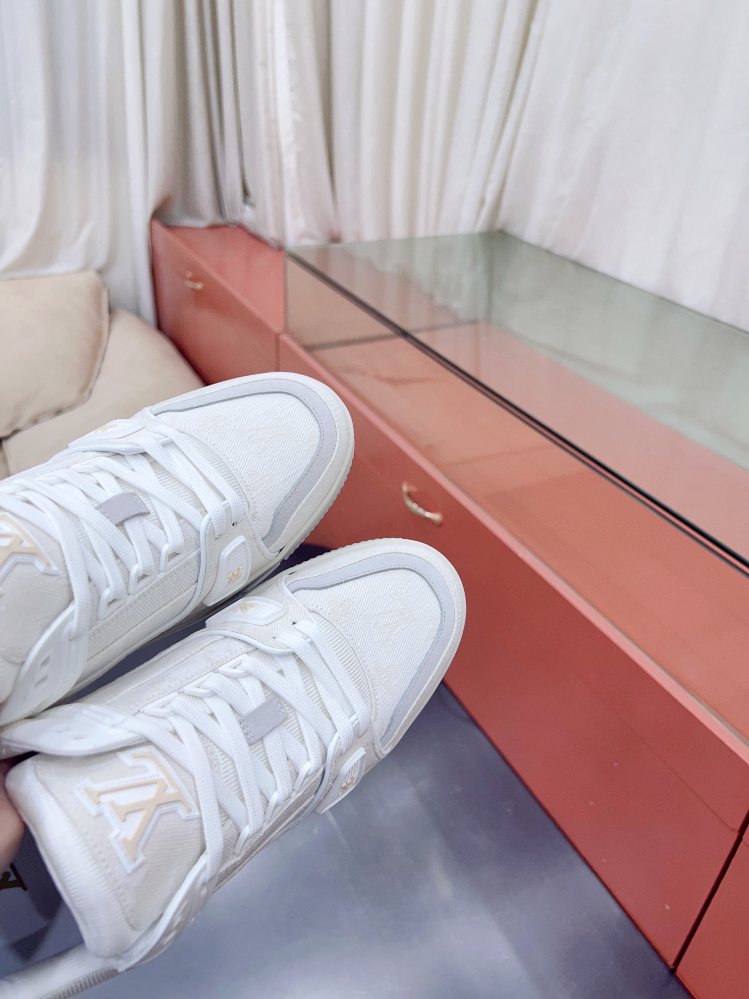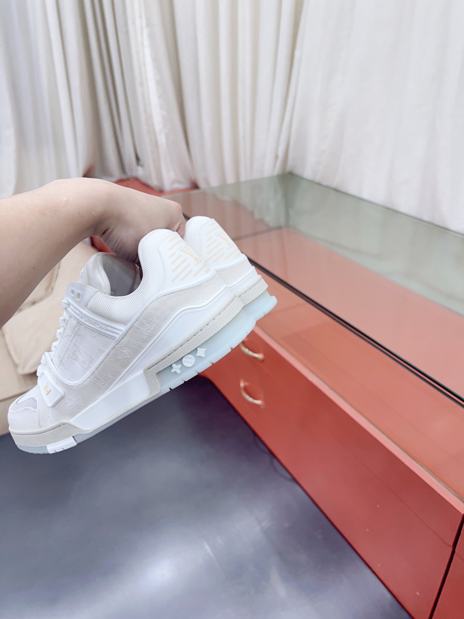 这款鞋子是AAAAA 1:1 质量 (非常棒). 使用了和原版一模一样的材料. 商标部分也保持了和路易威登/Louis Vuitton一样. 图片拍摄是实物鞋子拍摄, 您所收到的实物保证和我们图片一模一样.