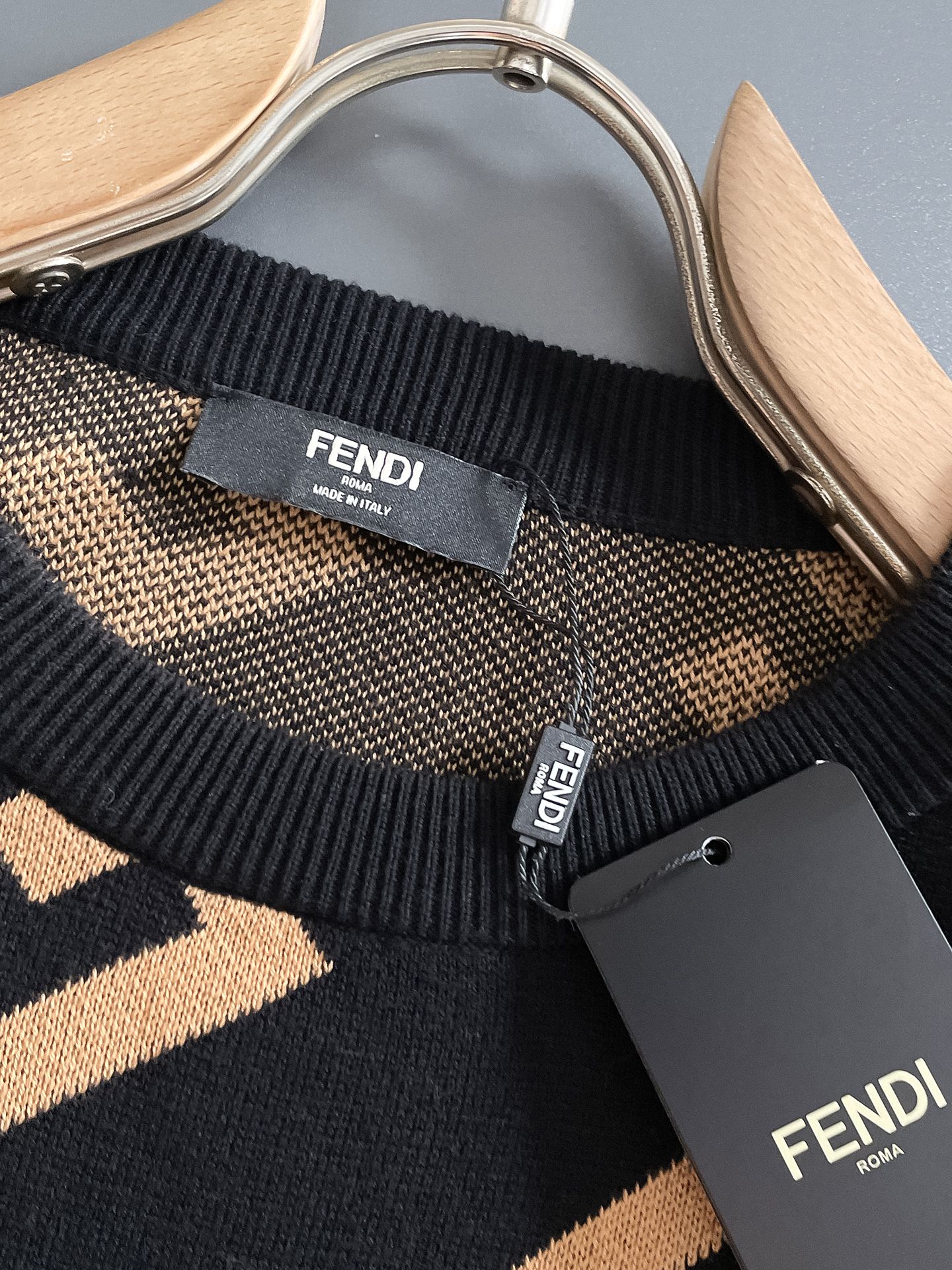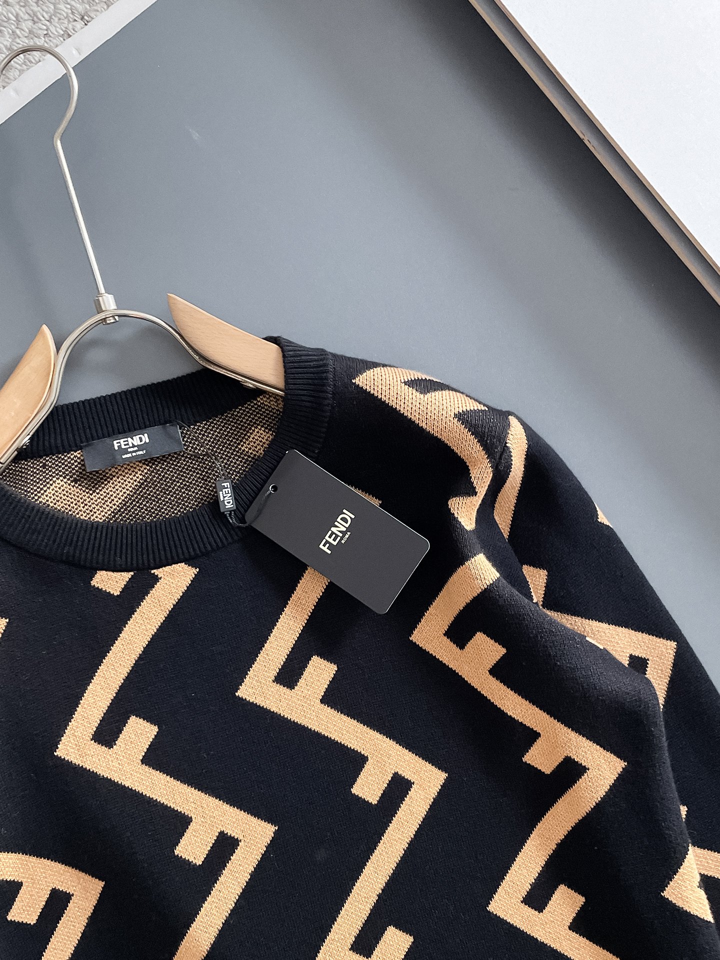 这款衣服是AAAAA 1:1 质量 (非常棒). 使用了和原版一模一样的材料. 商标部分也保持了和芬迪/Fendi一样. 图片拍摄是实物衣服拍摄, 您所收到的实物保证和我们图片一模一样.