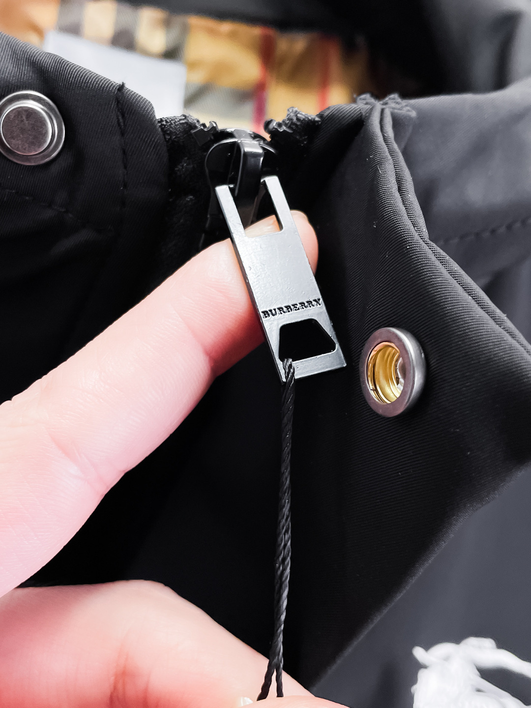 这款衣服是AAAAA 1:1 质量 (非常棒). 使用了和原版一模一样的材料. 商标部分也保持了和巴宝莉/Burberry一样. 图片拍摄是实物衣服拍摄, 您所收到的实物保证和我们图片一模一样.